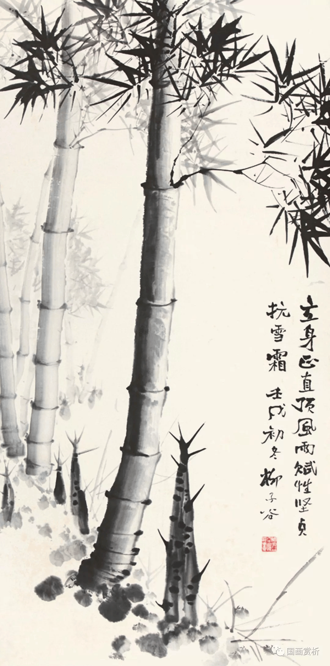 柳子谷(1901—1986),名习斌,号怀玉山人,堂号双翔阁,江西玉山人。4岁即随父亲读书,自幼酷绘画,自学《芥子园画谱》,悟性极高,深得其精髓,15岁便以工书善画闻名乡里。1924年入上海美专,师从著名画家谢公展、黄宾虹、潘天寿、刘海粟等学习。擅山水、人物、花卉,尤精兰竹。画竹,潇洒出尘,萧萧有声,被誉为“竹圣”、“板桥第二”;从二十年代画竹,一直画到八十年代,六十年的创作,柳子谷视竹为品格的象征,并且将画竹当作一种人生境界去追求。与徐悲鸿、张书旗三人被称为画坛的“金陵三杰”。