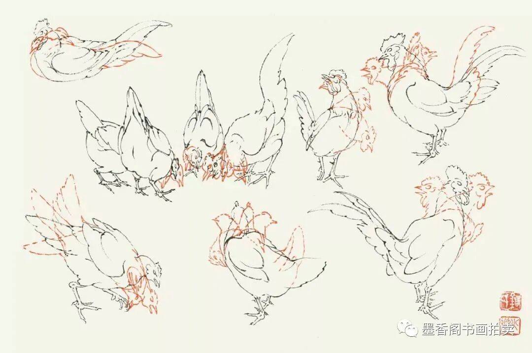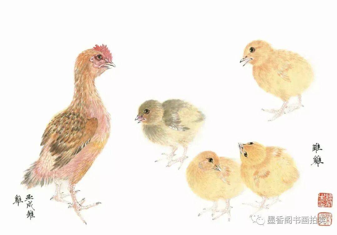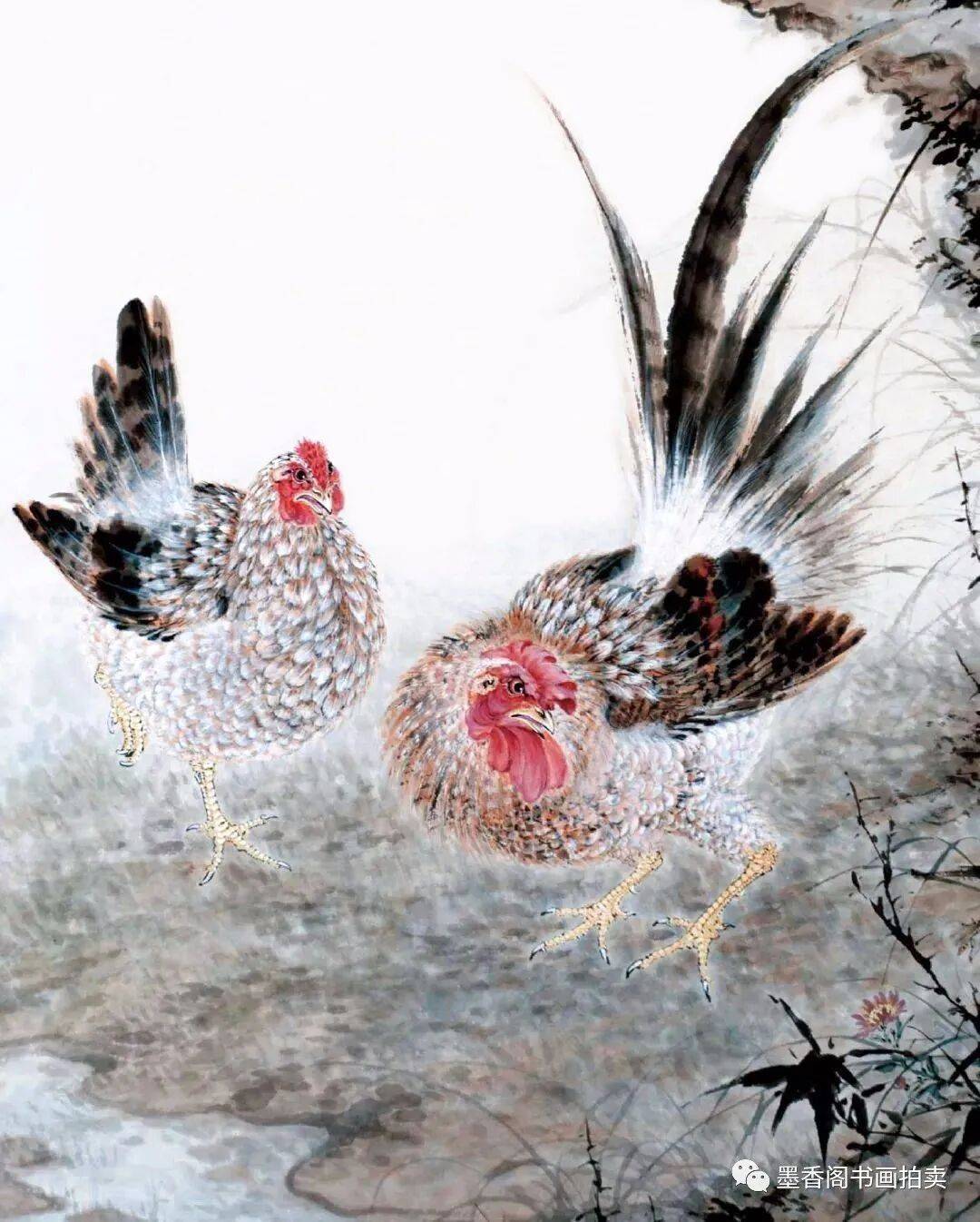 家鸡具“五德”,是中国历代文人、画家欣赏、赞美的家禽。家鸡品种形态各异,雌雄有别,雄者冠大、体高腿长、尾翎宽长、毛色丰富;雌者头小冠小、体矮腿短、尾翎短而齐、毛色素雅。画鸡,多表现其乡村、郊野之态,园田、篱落之趣。
