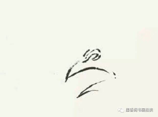 1.用重墨勾出公鸡的喙,注意线条要圆劲有力。