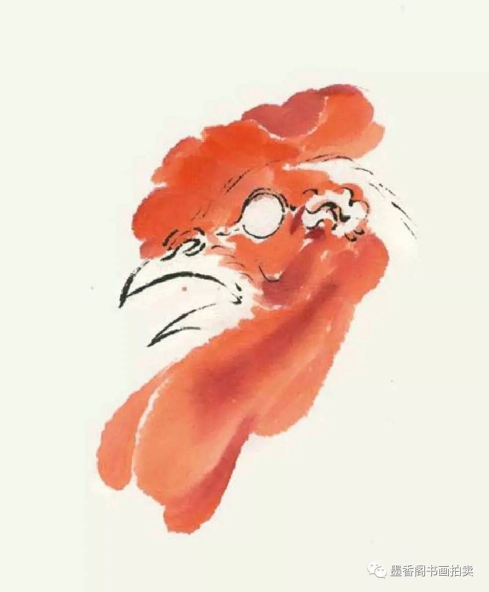 3.用朱膘调胭脂点画出公鸡的肉冠,注意水分要较为饱满,用笔较为含蓄。