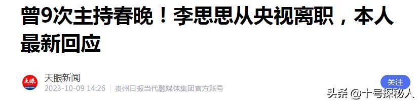 天眼新闻:曾9次主持春晚!李思思从央视离职,本人最新回应