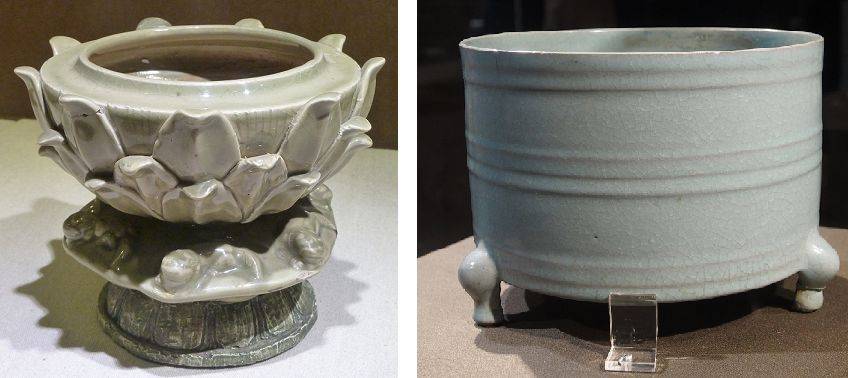 耀州窑莲花炉(宋耀州窑址出土) 汝窑奁式炉(故宫博物院藏)