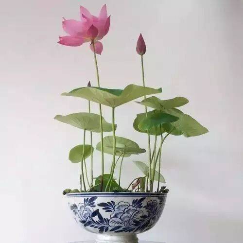 碗莲,又名盆莲、钵莲、桌上莲。一般的莲都过于大,碗莲便如文竹一样,成为雅室重要的装点,想象在书桌的瓷碗之中,开出莲花,其素雅之境,方寸之间尽显。