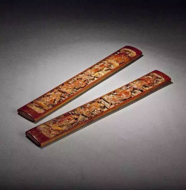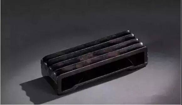 用于横放毛笔,以木、牙、铜、玉质材料制作。多作长方形,口沿外撇,内设笔搁。