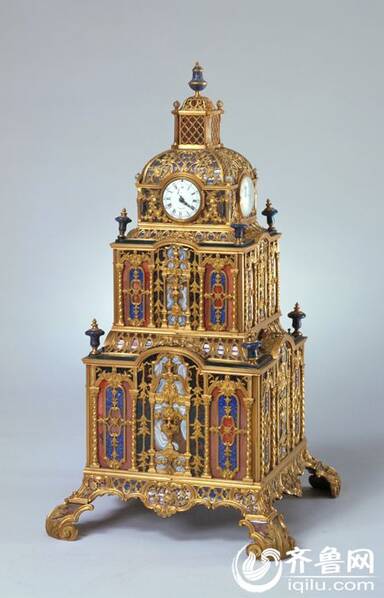 西洋科技文物铜镀金亭式规矩箱四面表。图片来源:齐鲁网