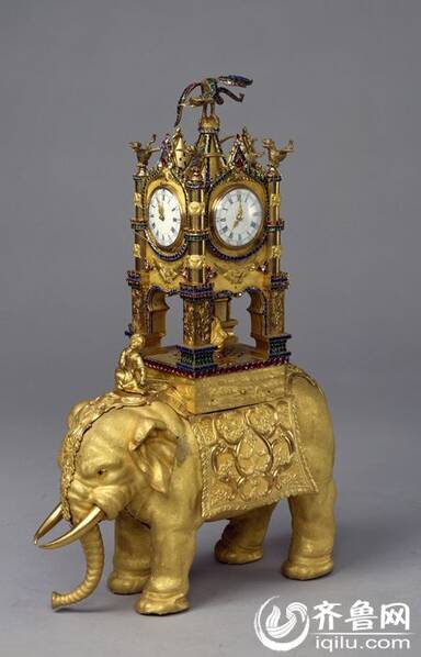 西洋科技文物铜镀金象驮四面表。图片来源:齐鲁网