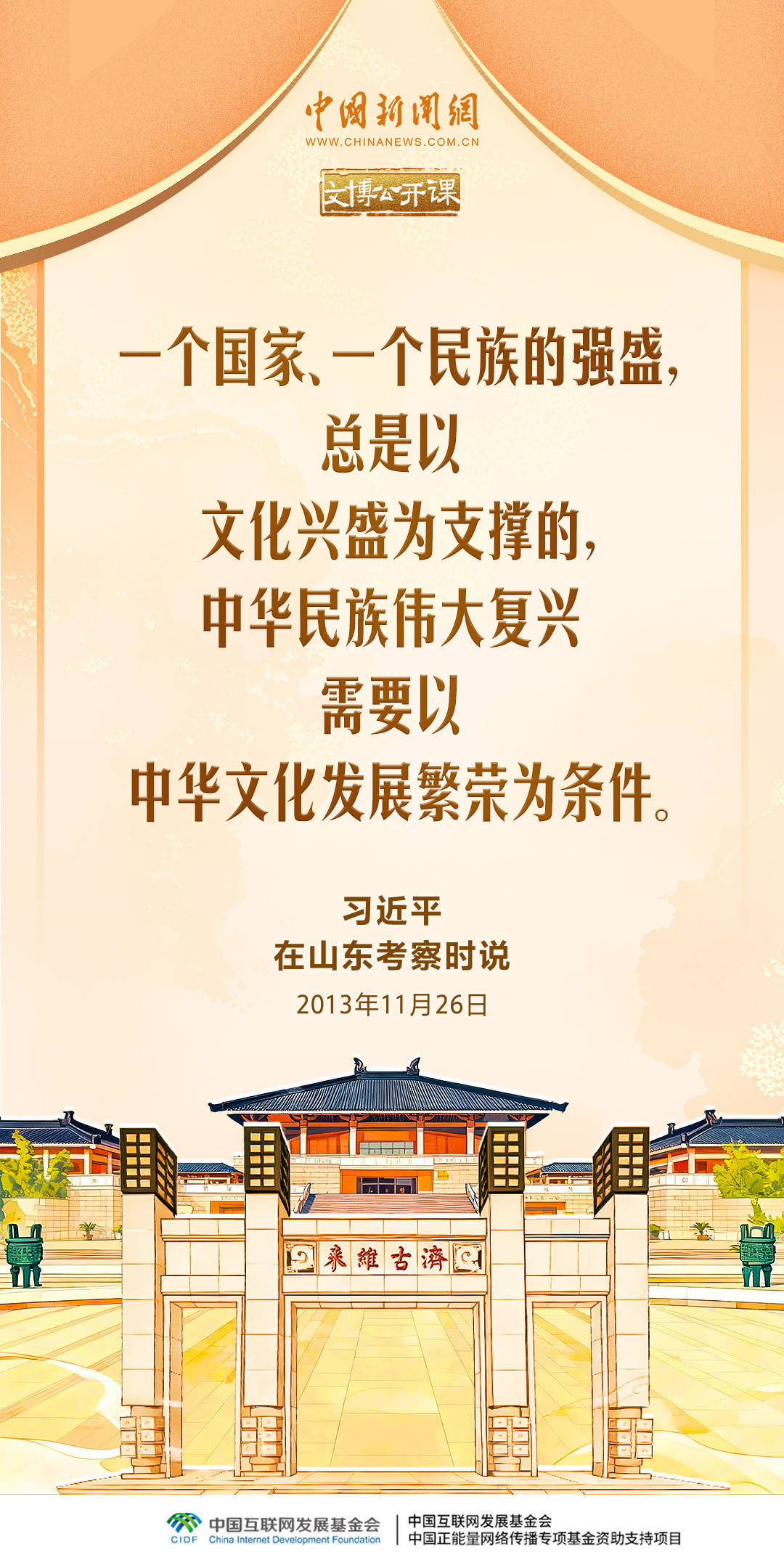 文化是一个国家、一个民族的灵魂。党的十八大以来,习近平总书记高度重视文博工作,多次就文博考古工作发表重要讲话、作出重要指示批示。