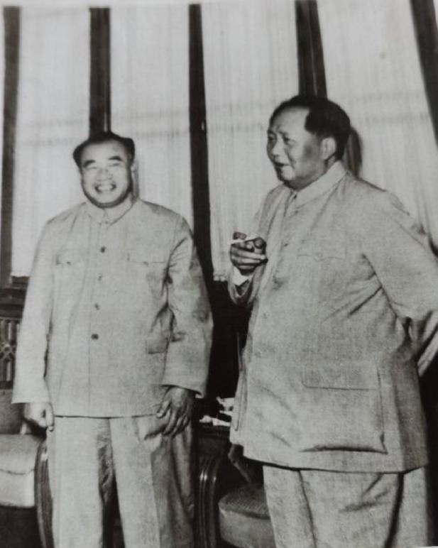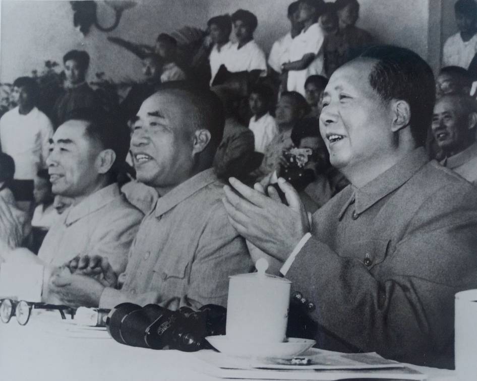在这张照片中,毛主席、刘少奇和朱德三位领导人共同出现在一起,代表了那个时代的三位杰出人物。
