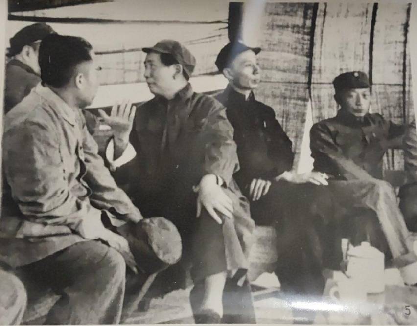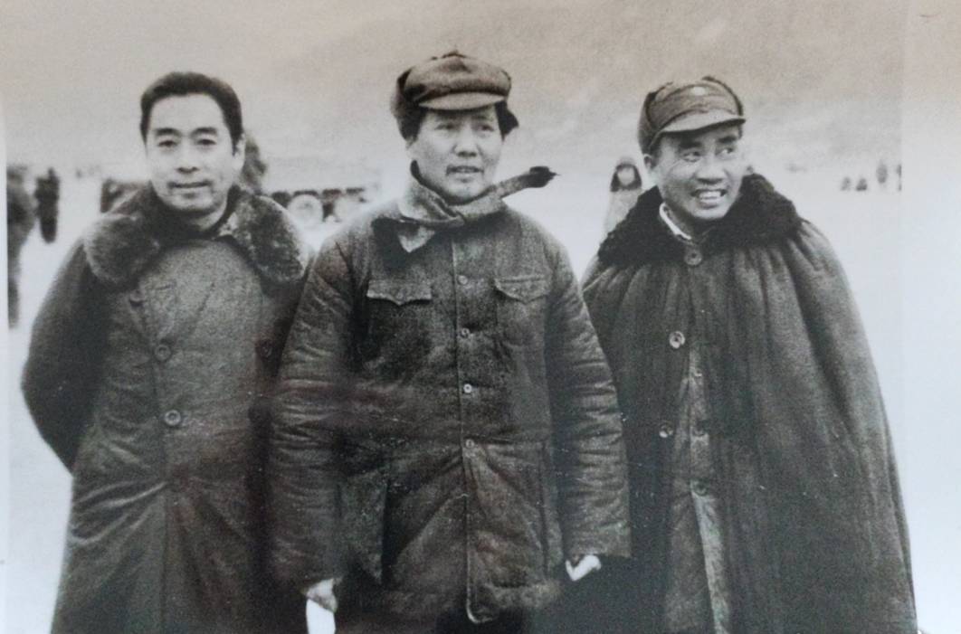 另一张毛主席、朱德和周总理三人合影,显现出他们之间的默契与合作。