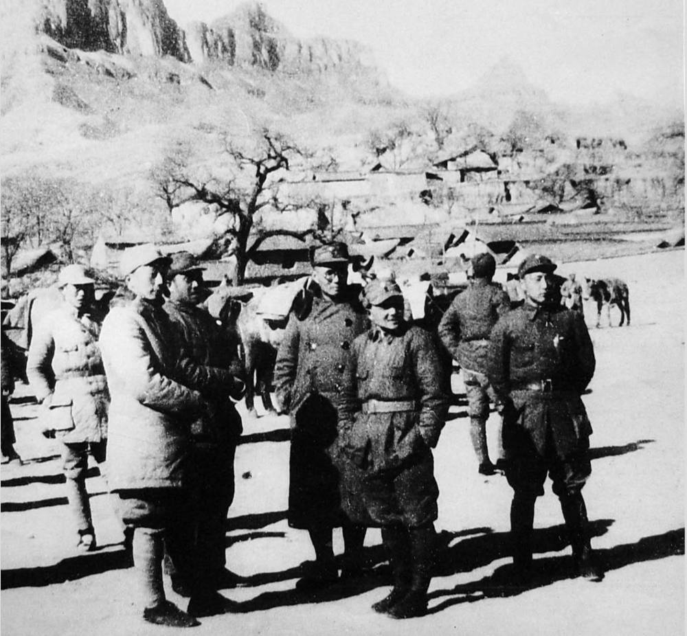 1940年,朱德与邓小平(前右二)、刘伯承(右三)、聂荣臻(左二)在晋东南桐谷镇合影。这一张照片展示了他与战友们亲密无间的关系。