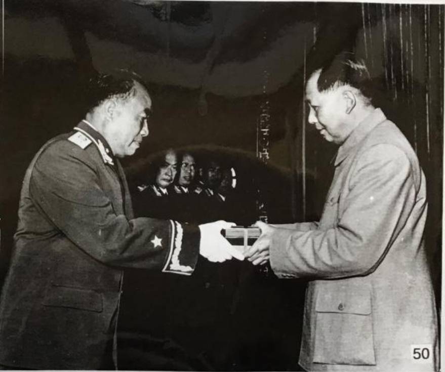 1955年,毛主席为朱德授勋,朱德被授予十大元帅之首的荣誉,成为当时最受尊敬的军事领导之一。