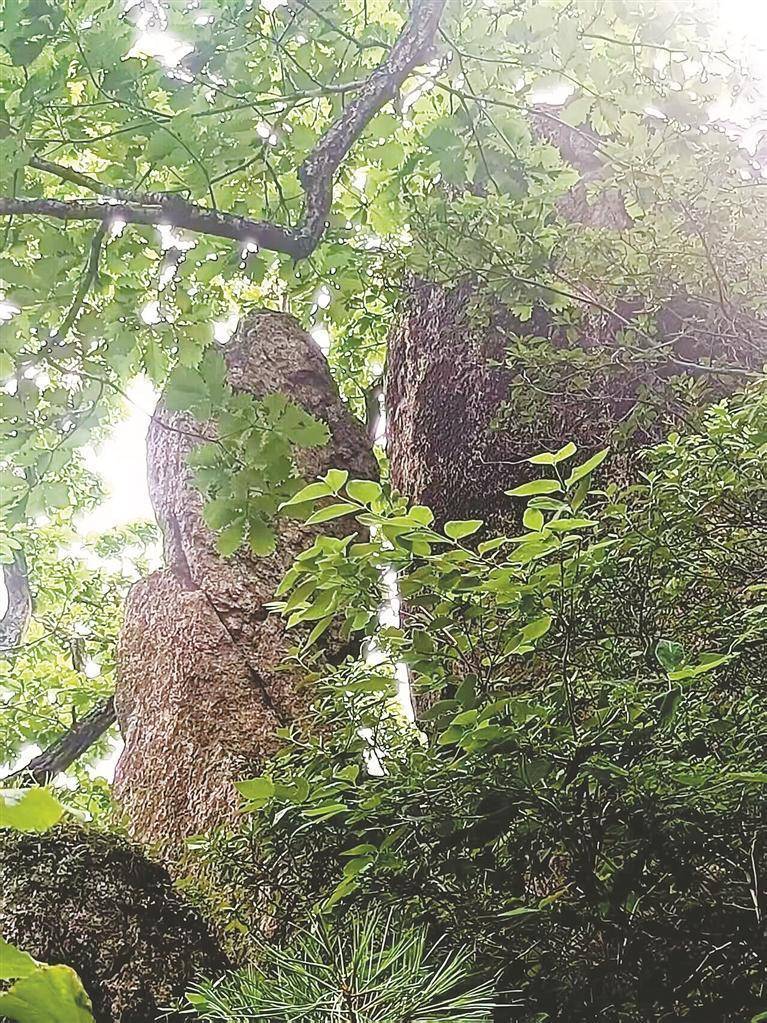 快到山顶了,一棵老松树形单影只,皮似龙鳞,干如铁铸,歪斜着兀自独立,根部扎在石缝间,这种顽强的生命力令人肃然起敬。旁边有两块石头,像立起的两块大石板,高高翘起,大小一致,薄厚相当,相互对称,呈现出倒“八”字,看上去有如蝴蝶的双翅。我们好奇地指着两块石头问导游:“那太像蝴蝶的一双翅膀了。”导游忍不住笑着答:“你们真有眼力呀,这就是叫了很多年的蝴蝶石。”我们顺口惊讶赞叹:“蝴蝶石?名副‘奇石’啊!”在蓝天白云下,悠悠静立,顺理成章联想到庄周梦蝶,有一种似梦非梦的幻觉。石头变成了蝴蝶,还是蝴蝶变成了石头?这个哲学问题说不清楚,转念又一想,若能说清楚,或许就没有意义了。