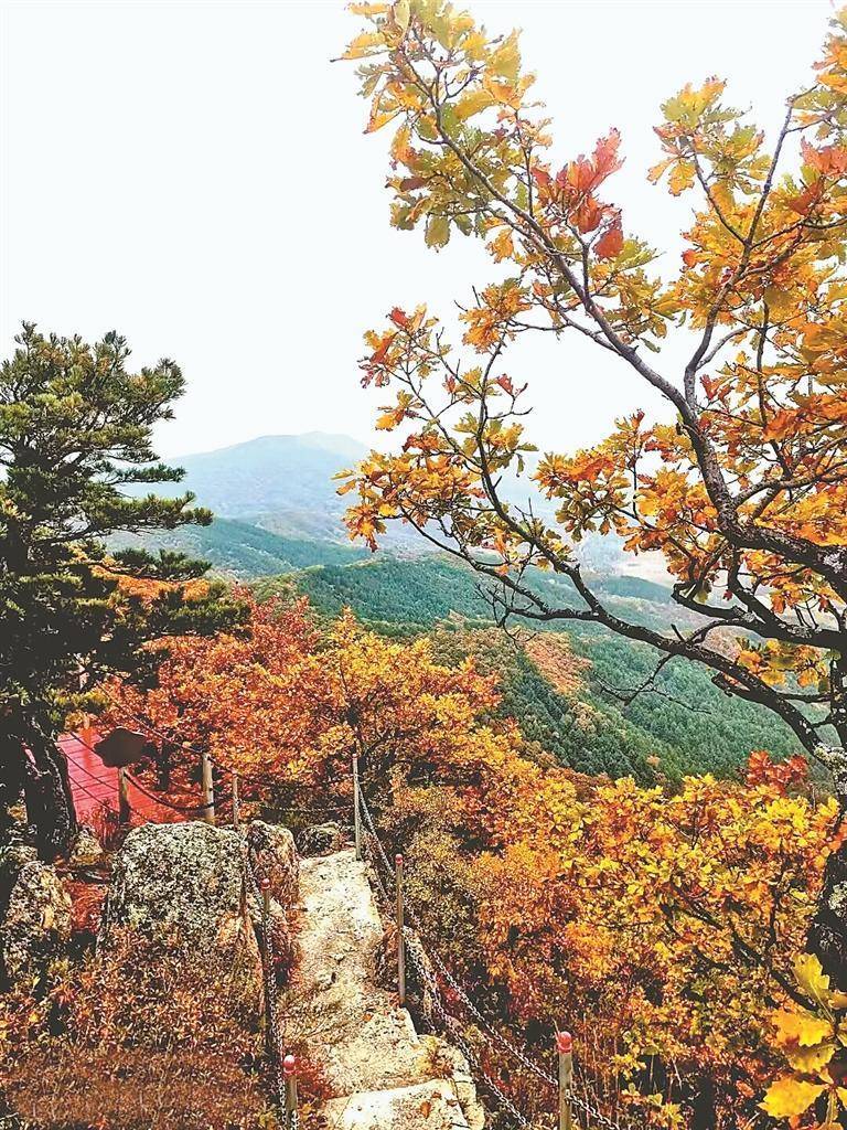 我们观赏许久“知青林”,才依依不舍向山上攀登。各种落叶在脚下沙沙作响,入心入耳,撩人情思,既有画面感,又有诗情跳跃。大山不语四季景,奇石无处不入眼。在大山的怀抱里,我们慢慢向上走,边走边欣赏。一步一景。在蜿蜒曲折的山道上,满眼是奇形怪状的石头。这些石头大小不一,形状千姿百态。有的石头孤零零的,似在沉思;有的两块石头相依相偎,像一对亲密的情侣在窃窃私语;有的石头挤挤挨挨,如一群调皮的孩子在嬉戏;还有的石头层层叠叠,或整齐或参差叠加在一起,仿佛是一面高耸入云的城墙牢不可破,真是巧夺天工。景区的奇石琳琅满目,树木品种齐全,并且这些都是天然形成的,看不到一星半点的人工迹象,此乃一绝。费尔巴哈曾经说过:“自然界是一本不隐藏自己的大书,只要我们去读它,我们就可以认识它。”