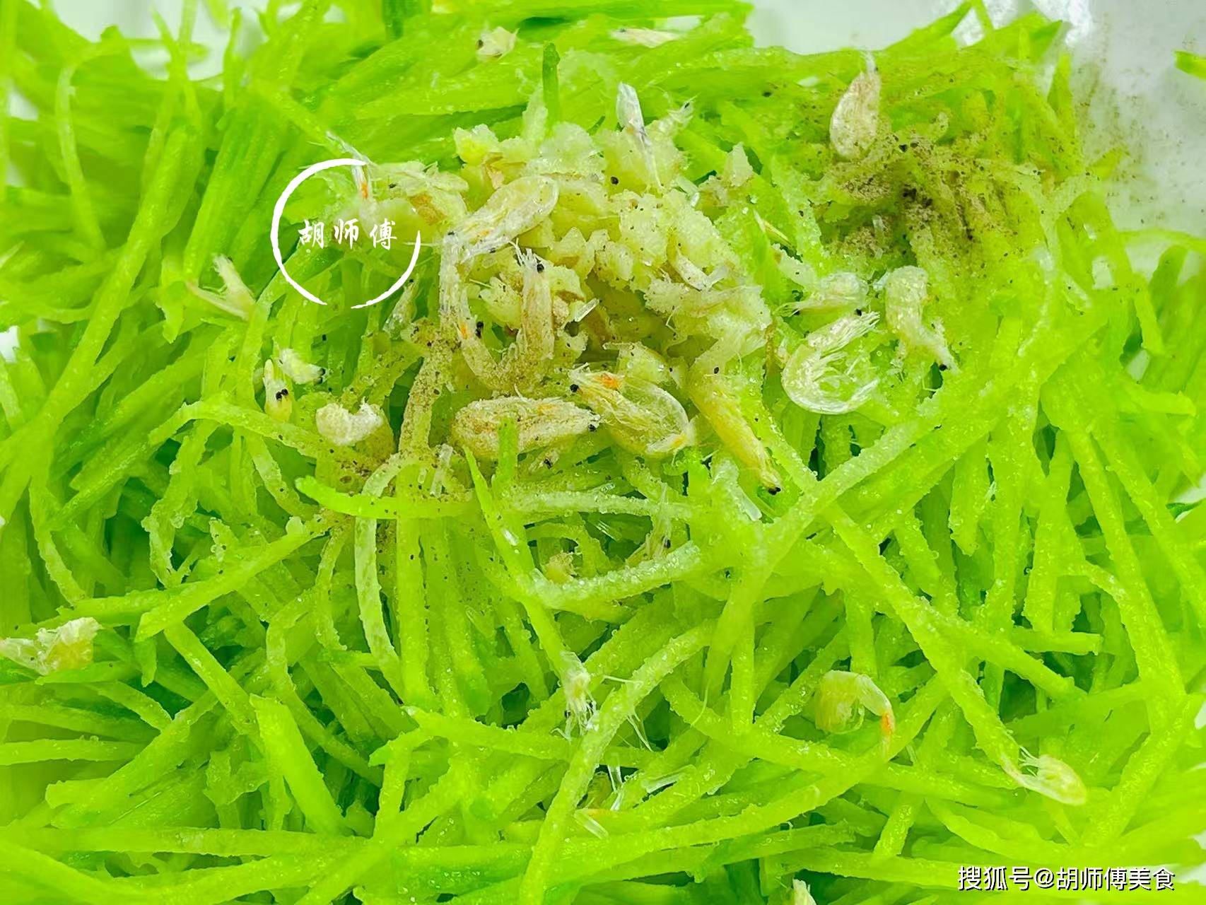 2、拌青萝卜丝馅时,一定要记得放一点虾米,因为虾米可以更好的增加青萝卜丝的鲜香味,如果不加虾米,会感觉蒸好的水晶萝卜饼差一点点鲜味,但是虾米也不能放太多,否则会压住青萝卜本身的鲜甜味。