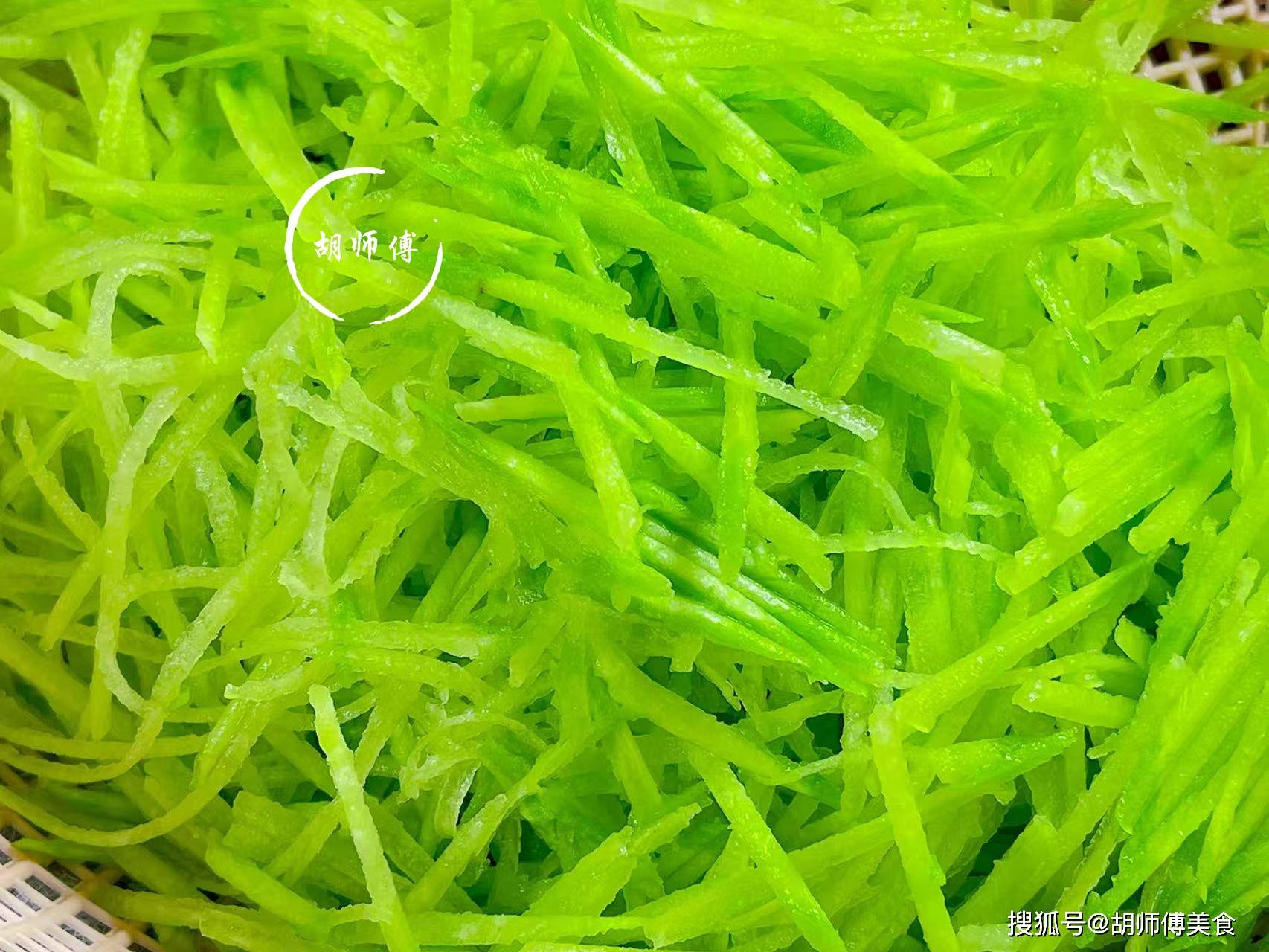 第一步:买青萝卜时,尽量买个头适中的,不要买块头很大的,这种萝卜很容易中间发白,不好吃,买回家的萝卜,先将它外表的皮削的扔掉,然后把萝卜冲洗干净后,用擦丝器,将青萝卜刮成如下图所示的细丝备用。