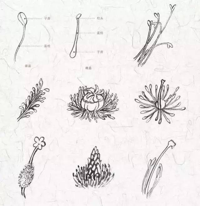 花蕊一般都是在花头的着色结束之后进行绘制,是花头设色的点睛之笔。大多数时候,工笔画的花蕊都是采用立粉法绘制。此外还有连花丝一起双勾渲染的勾染法、平涂加局部渲染的勾填法,以及淡藤黄点出花蕊后用淡朱磦勾蕊线的点写法。