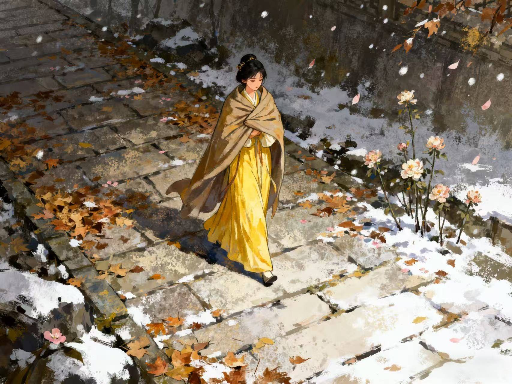 花落的"颜色改"本是寻常,却被"复谁在"之问,把改写成失踪;松柏摧为薪本是生计,却被"桑田成海"之叹,把生写成覆没。刘希夷把"相似"留给花,把"不同"留给人——原来睿智并非无惧,而是让惧被花影冲淡,让不同被相似轻轻托起。如今墓柏已尽,野花仍在巷口自开自落,替谁把呼吸磨得薄如初春。