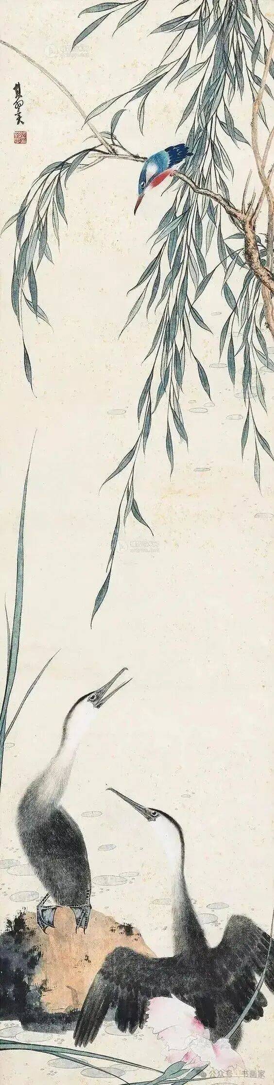 更为难能可贵的是,张其翼以其独树一帜的艺术风格,在花鸟画坛上独领风骚,犹如夜空中最亮的星,照亮了后来者前行的道路。他的画作,不仅是技艺的展现,更是心灵的抒发,让观者在欣赏之余,也能感受到那份对自然、对生命无尽的热爱与敬畏。