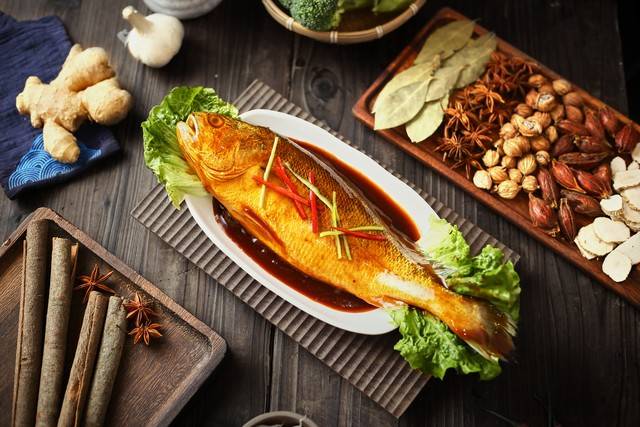 :因野生黄唇鱼禁售,可用养殖大黄鱼模拟其风味。选择2斤以上大黄鱼,其肉质紧实度与黄唇鱼相近。