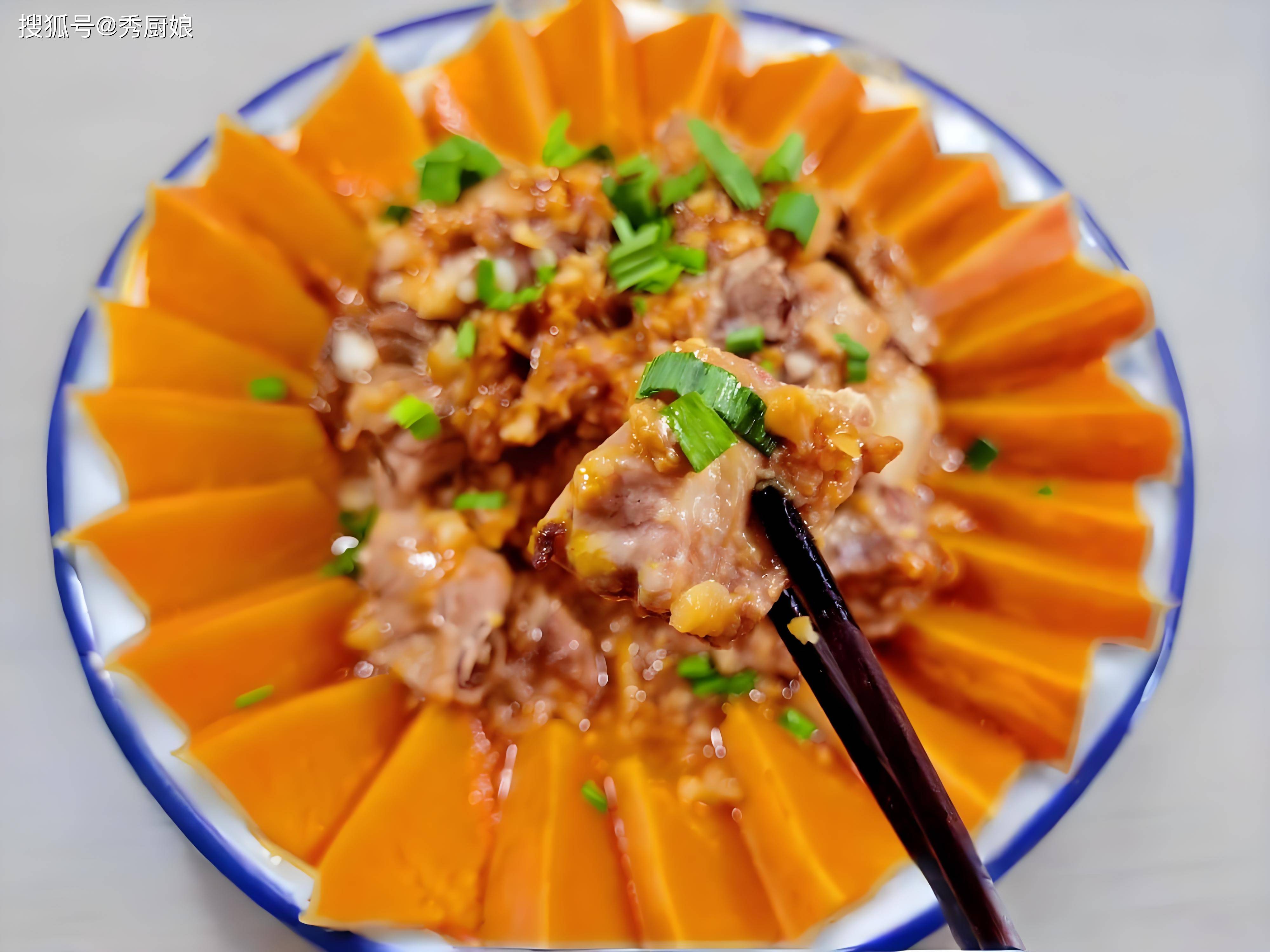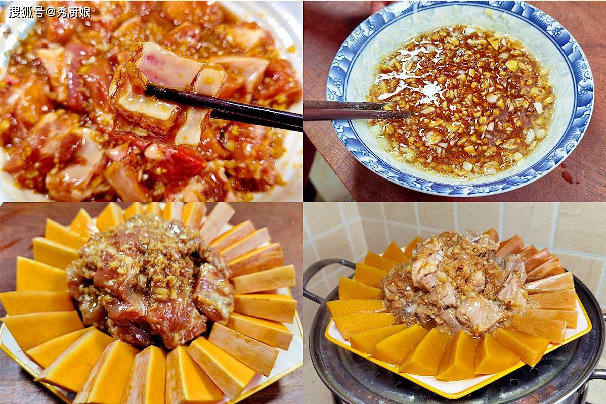 蒸好的排骨软烂脱骨,南瓜吸收了排骨的肉汁,变得异常香甜软糯。这道菜荤素搭配,营养均衡,用“蒸”的方式也特别健康,不给身体增加负担。