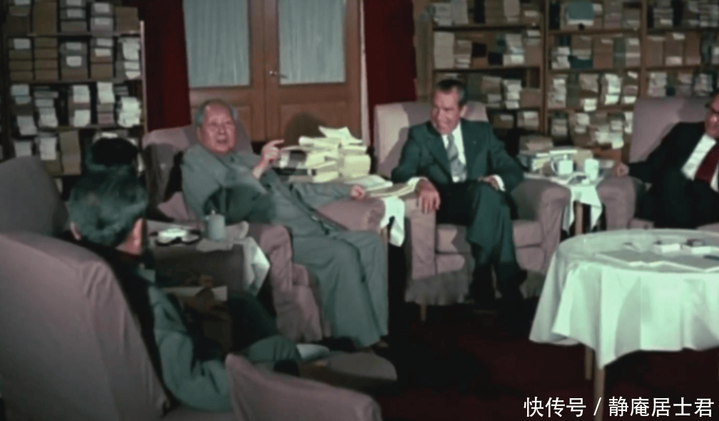 毛主席在中南海时,也时刻关注着尼克松的动向。尽管几天前毛主席因病晕倒并刚被医生抢救过来,身体仍然十分虚弱,但他依旧关心国家大事,并催促周总理在午餐后带尼克松总统前往中南海。下午2点40分,尼克松抵达中南海毛主席的书房,他看着这里的简朴环境,深感震惊,因为他早就听说毛主席生活简朴,但亲眼所见还是让他大吃一惊。
