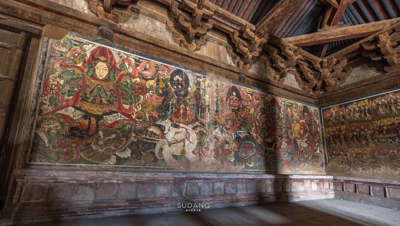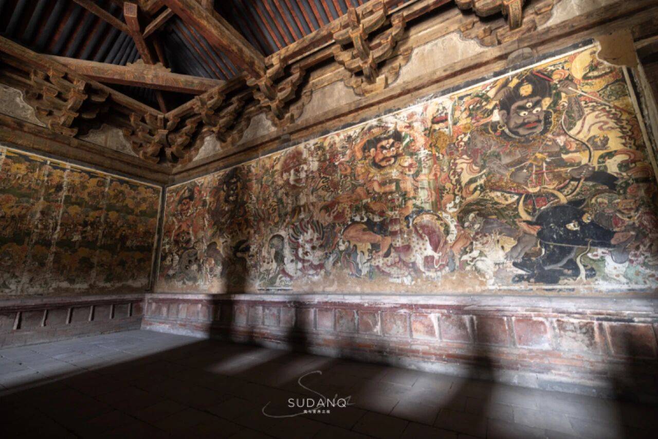 西壁上层为五岳神帝与四海龙王,中层是十殿阎君与地府官吏,下层的则是十八层地狱图景。