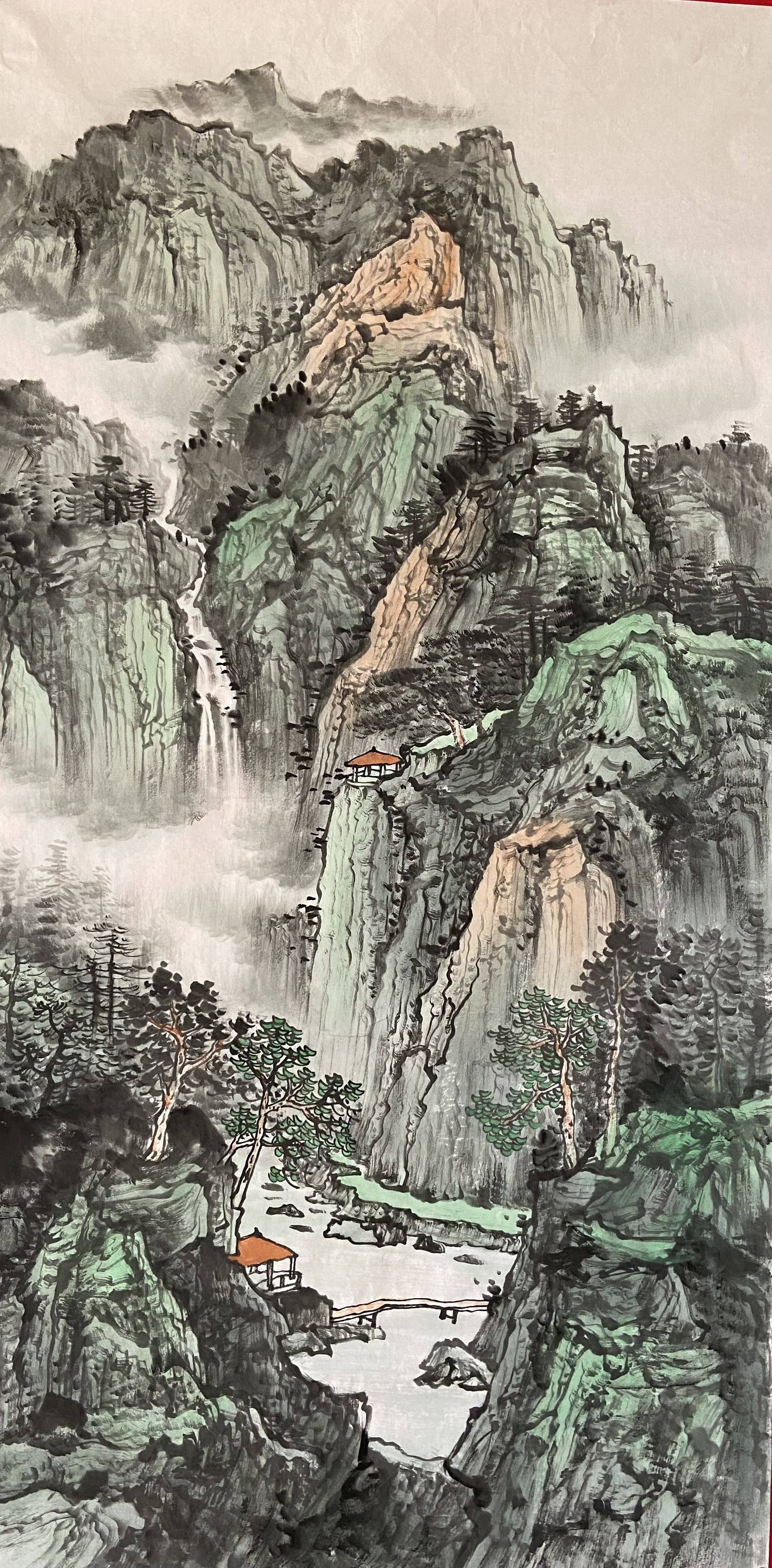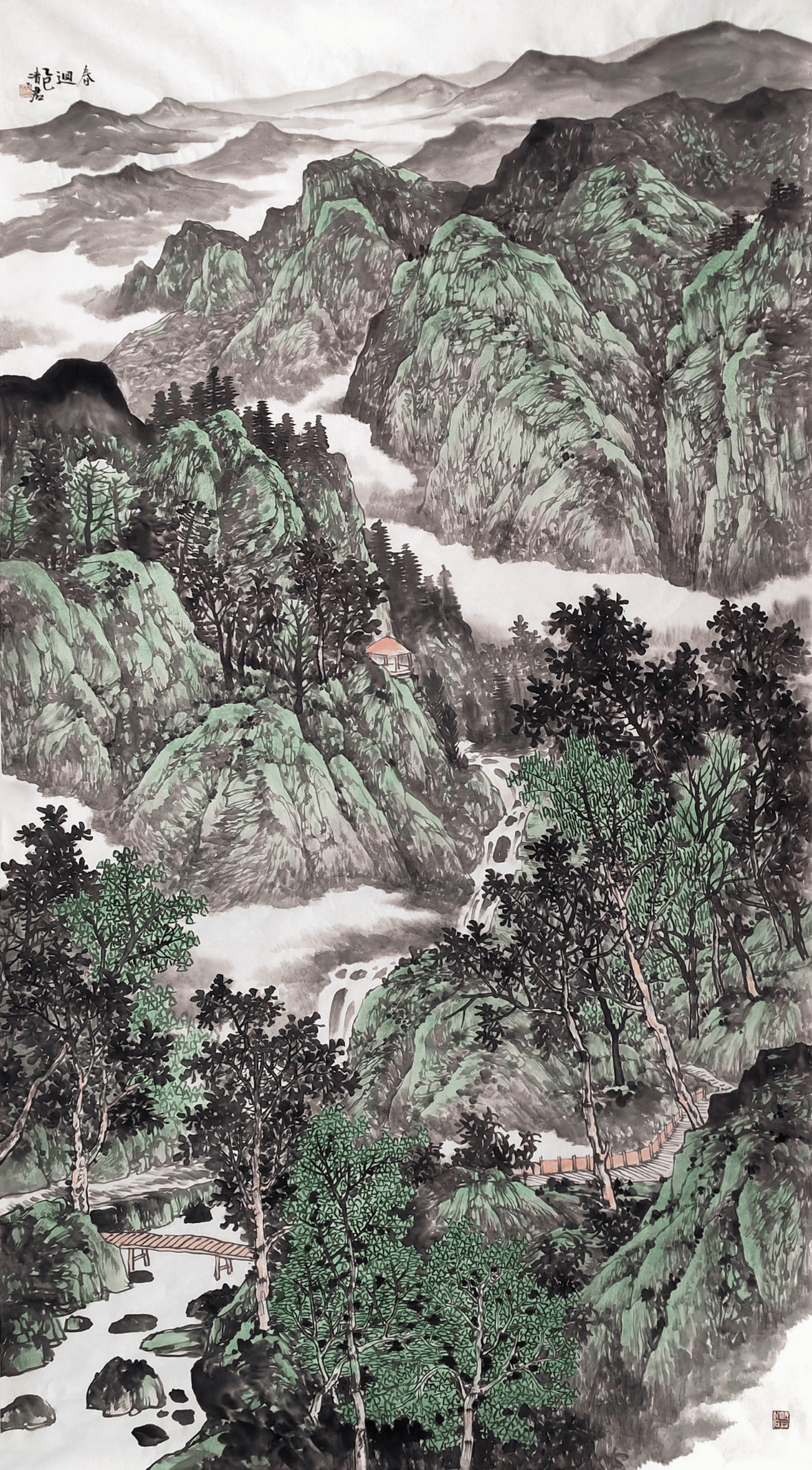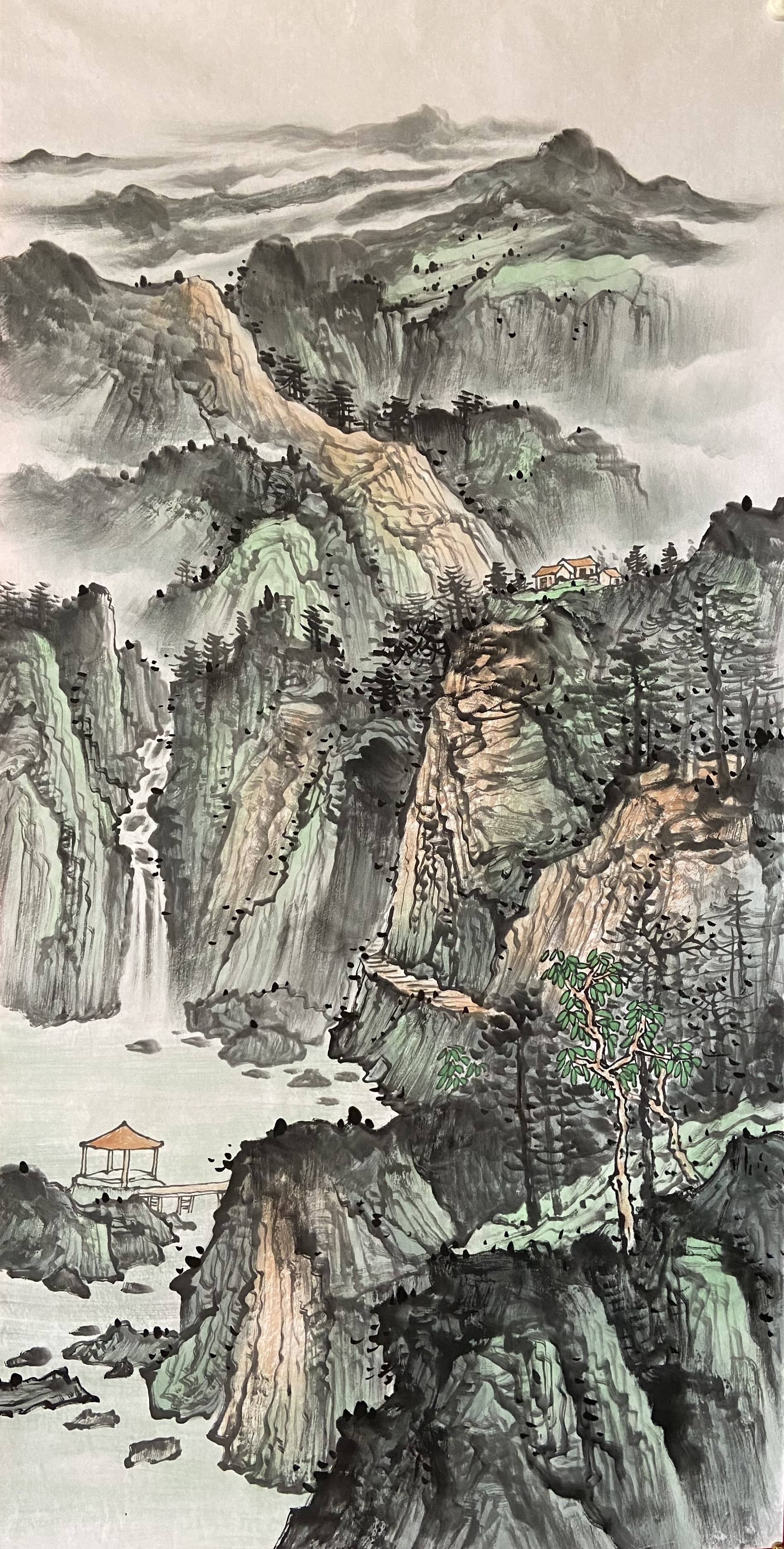 总而言之,陈培华先生的传统青绿山水作品,是一座架设在古典与现代之间的彩虹之桥。它们以古法为根基,以青绿为语言,为我们描绘了一个既遥远又亲近的精神家园。收藏这样一幅画,不仅是收藏一件艺术品,更是收藏一段活化的历史,一份永恒的山河情怀,一个值得世代传承的文化瑰宝。