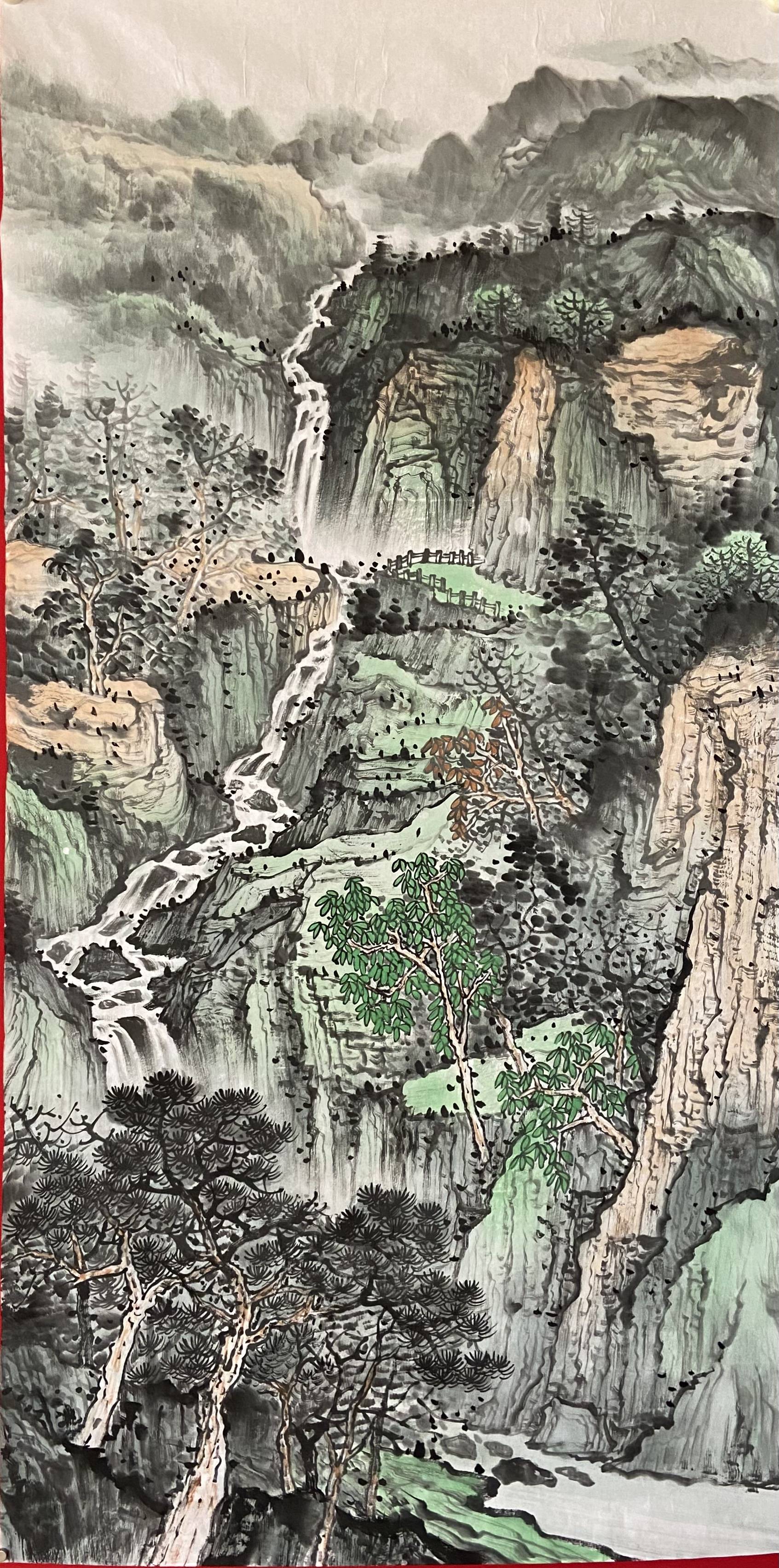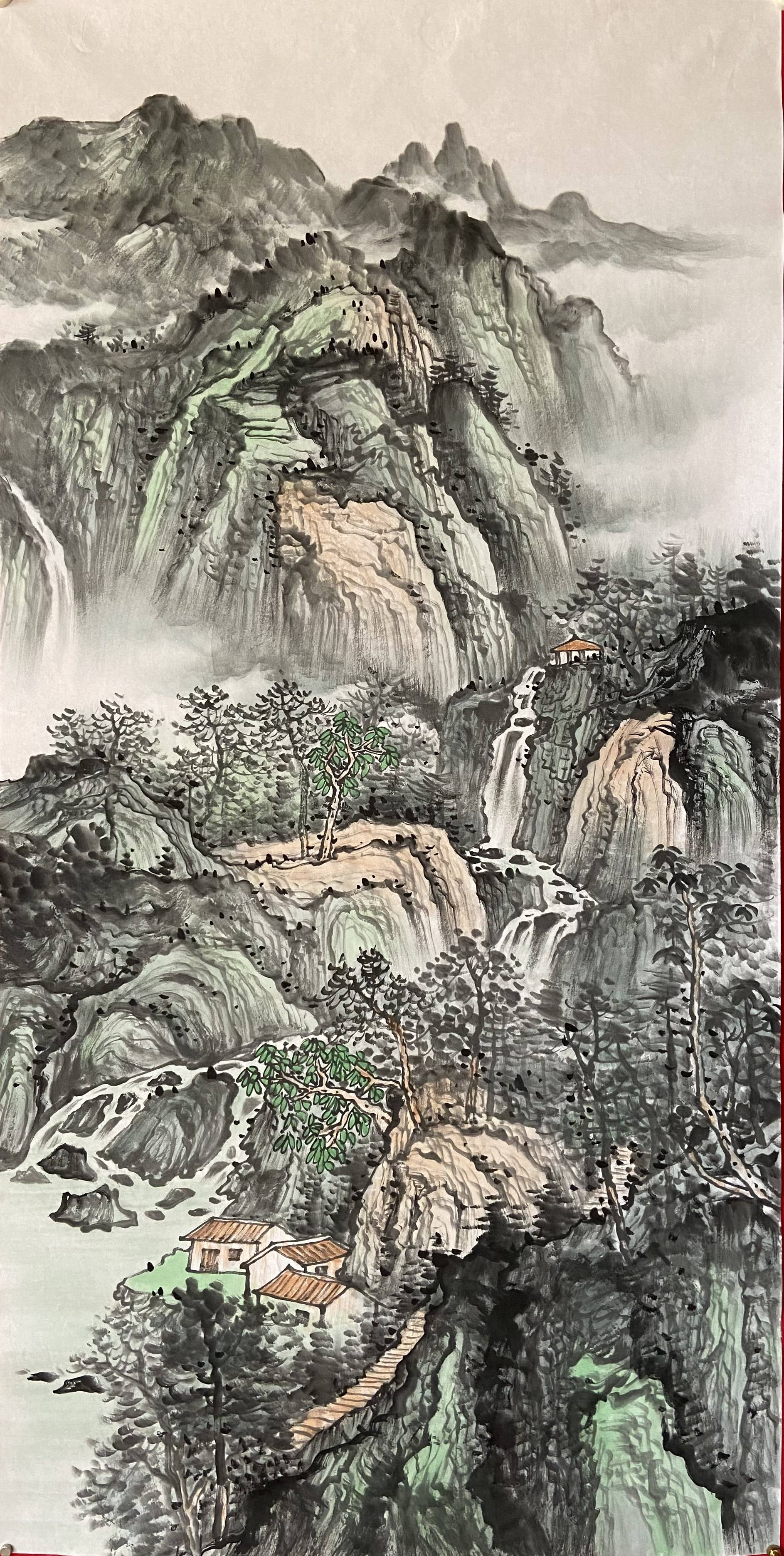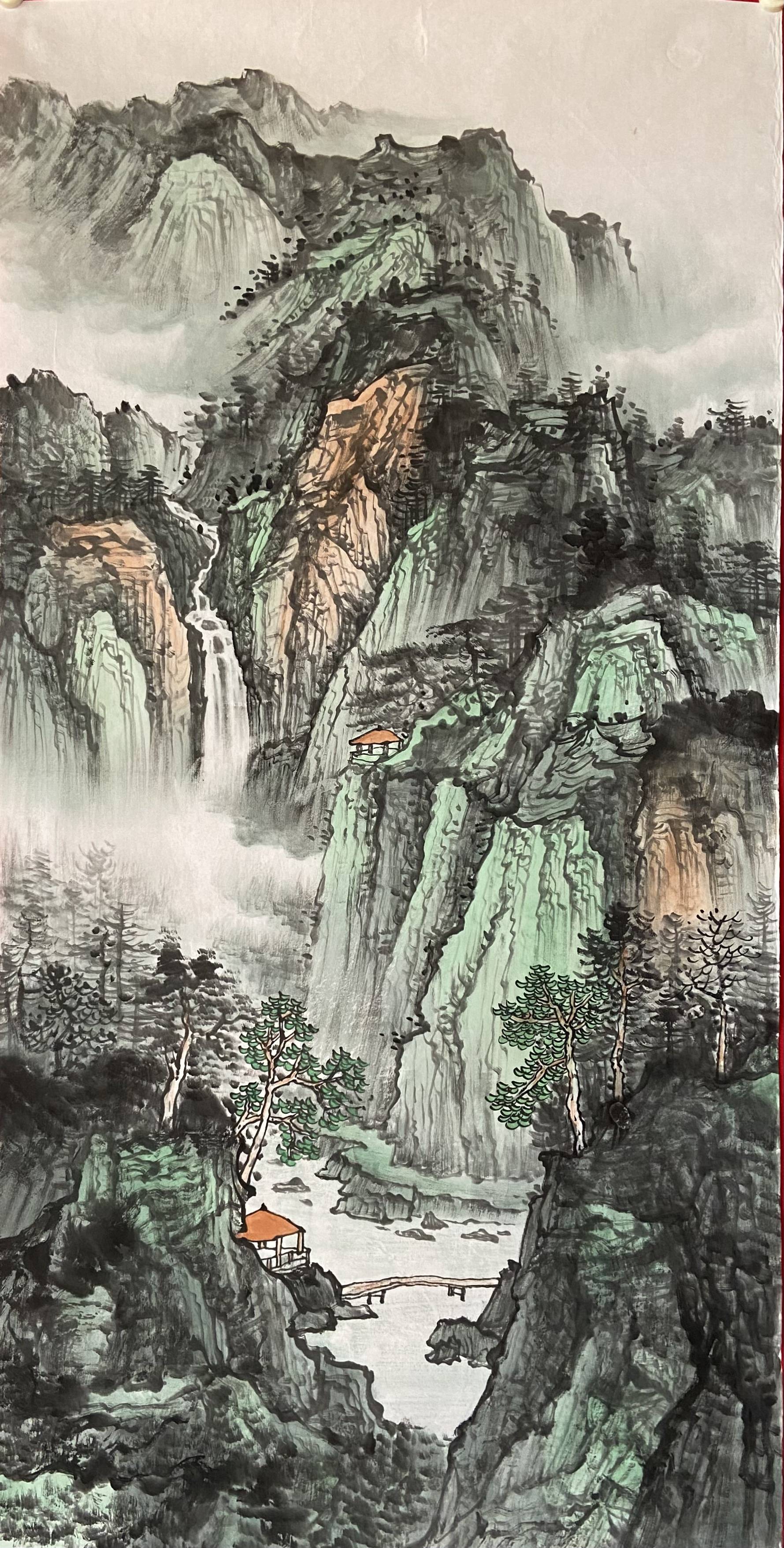 总而言之,陈培华先生的传统青绿山水作品,是一座架设在古典与现代之间的彩虹之桥。它们以古法为根基,以青绿为语言,为我们描绘了一个既遥远又亲近的精神家园。收藏这样一幅画,不仅是收藏一件艺术品,更是收藏一段活化的历史,一份永恒的山河情怀,一个值得世代传承的文化瑰宝。