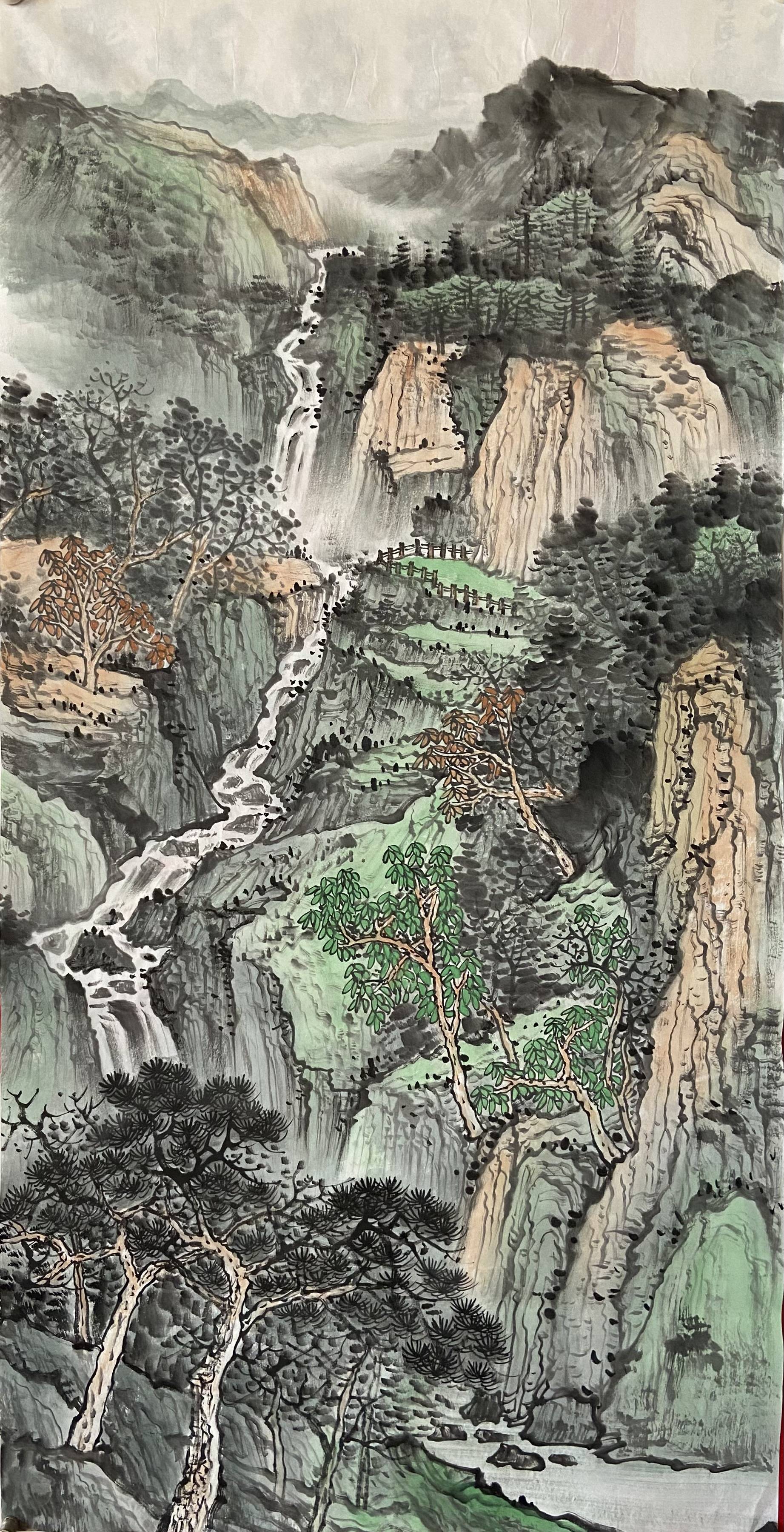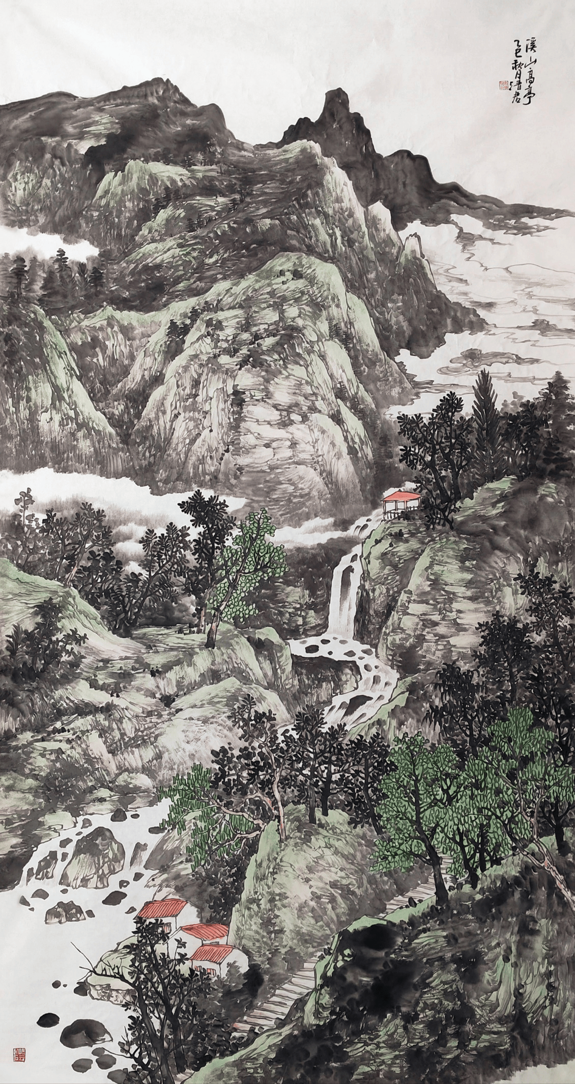 大唐盛世,文艺灿烂繁盛。明人董其昌以唐朝禅宗分南北为依据,于是乎,以同理画分南北。以山水景观而论,南北实景象各异,南北画风又乃绘画审美之不同也。北方山水多崇高雄伟,极具阳刚之美;南方山水多显秀雅,又多为优美之状。以此论之,史清君的山水画乃北宗之大美也。史清君是河北人也,自古燕赵乃出豪杰,豪杰壮士极多性格阳刚之大丈夫也。