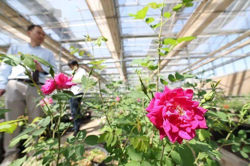 原产中东地区的大马士革蔷薇,是目前国际市场中提炼玫瑰精油的主要原材料;来自欧洲的古老月季品种“路易十四”,名字中带着一个王朝的故事;中国在1980年代育成的月季品种“绿野”,可以开出独特的黄绿色的小清新花朵;自育的粉色切花月季品种“燕妮”,寓意“北京小姑娘”,曾经参展2019年北京世界园艺博览会,吸引了全球各地观众的目光。
