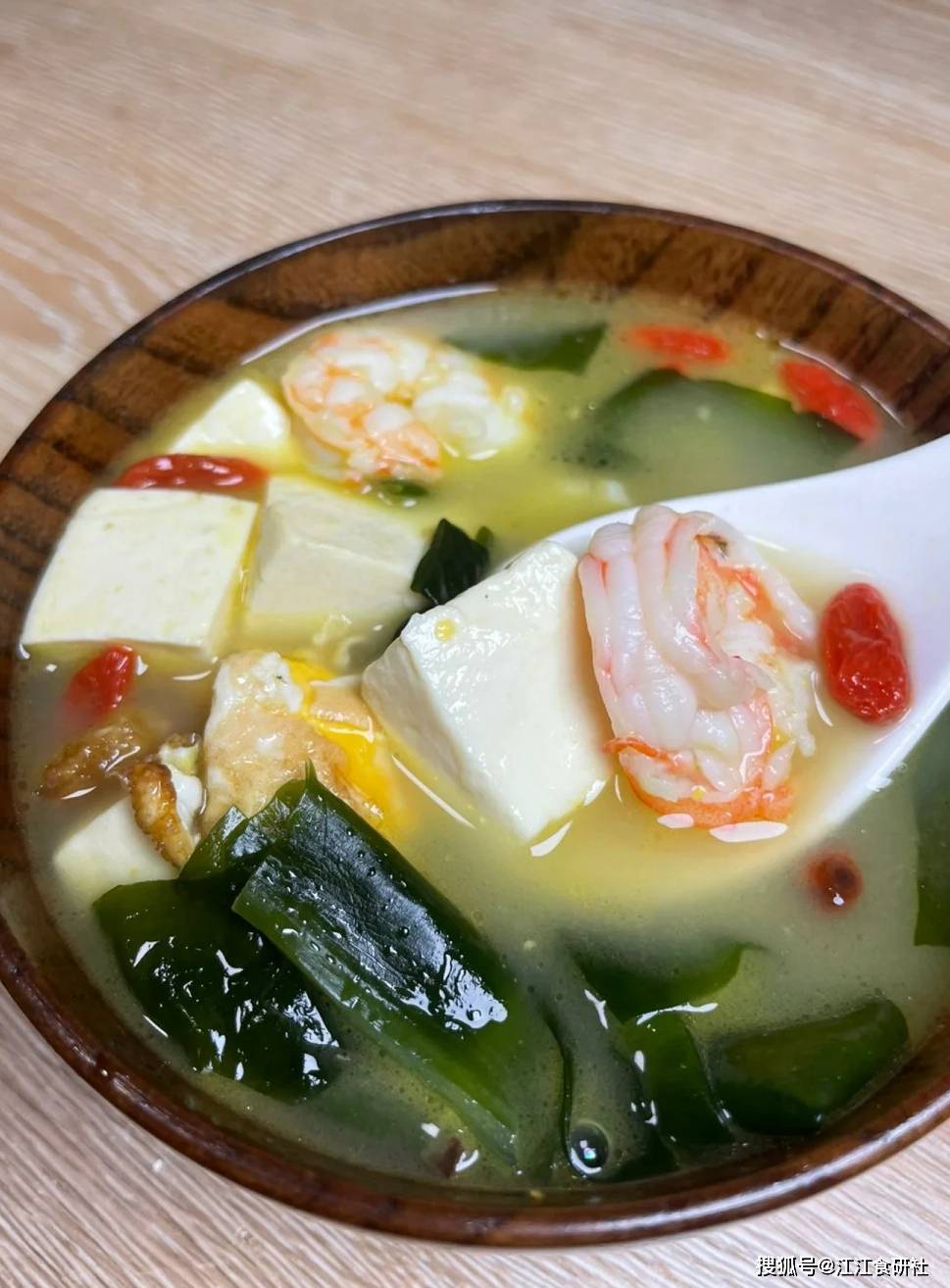 这道汤做法简单快捷,味道却异常鲜美,非常适合时间紧张的日常。豆腐和虾仁都是优质的补钙来源,与海带搭配,强强联合。煎蛋的加入,让汤色奶白,味道也更加醇厚,十分钟就能端上桌,营养一点不打折。