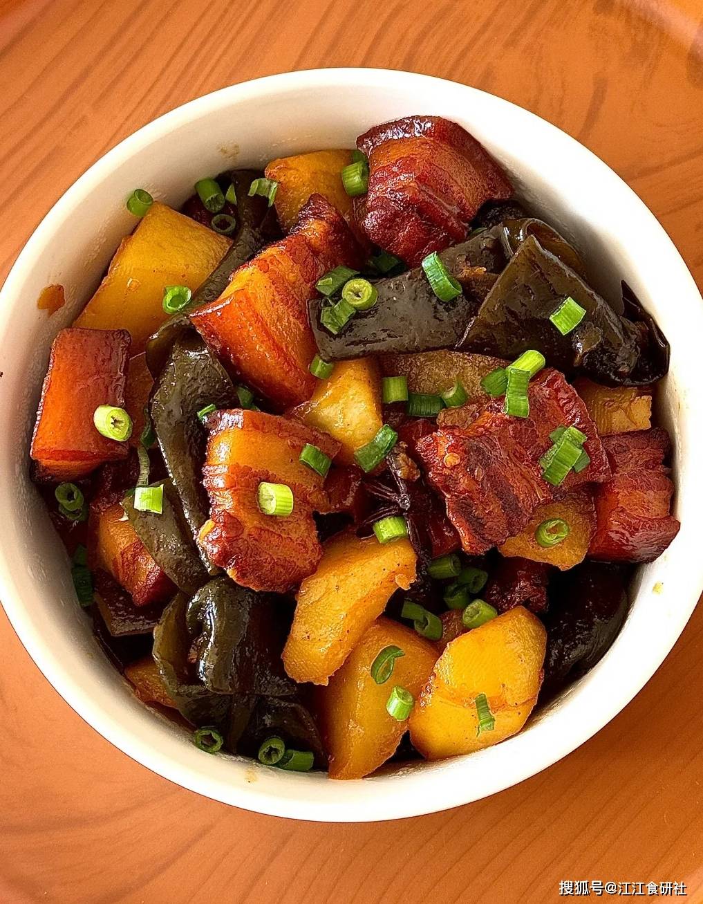 红烧肉是很多人的心头好,但难免觉得油腻。加入海带和土豆,正好化解了这份油腻,让这道家常菜变得健康又美味。海带吸收了肉汁,变得咸香可口;土豆炖得软糯,让整道菜的口感层次更加丰富。