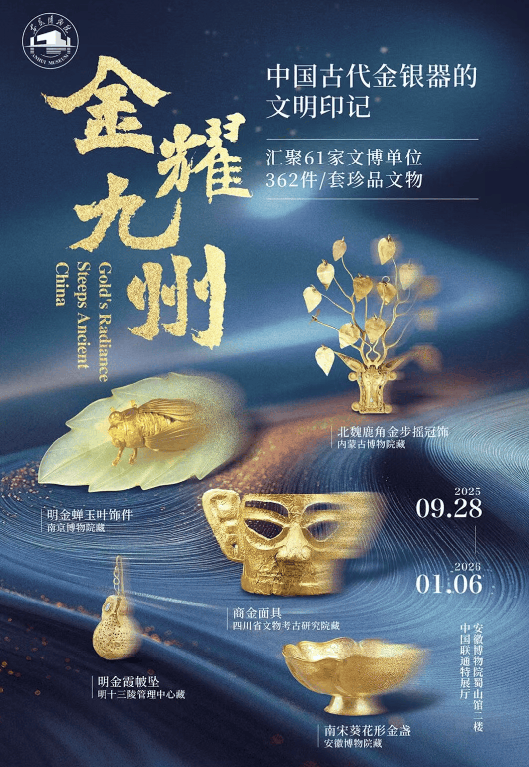 在北京的“黄金缕”特展汇聚了170多件珍贵的古代金器,全面展现了中国超过三千年的黄金工艺成就。而安徽博物院的“金耀九州”展,汇聚60多家文博单位的362件文物,展现了中国古代金银器的文明印记。