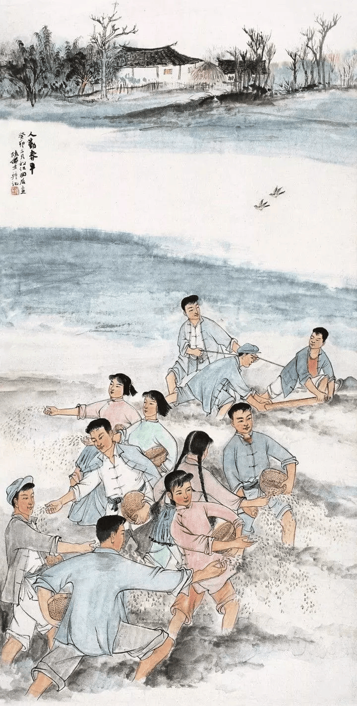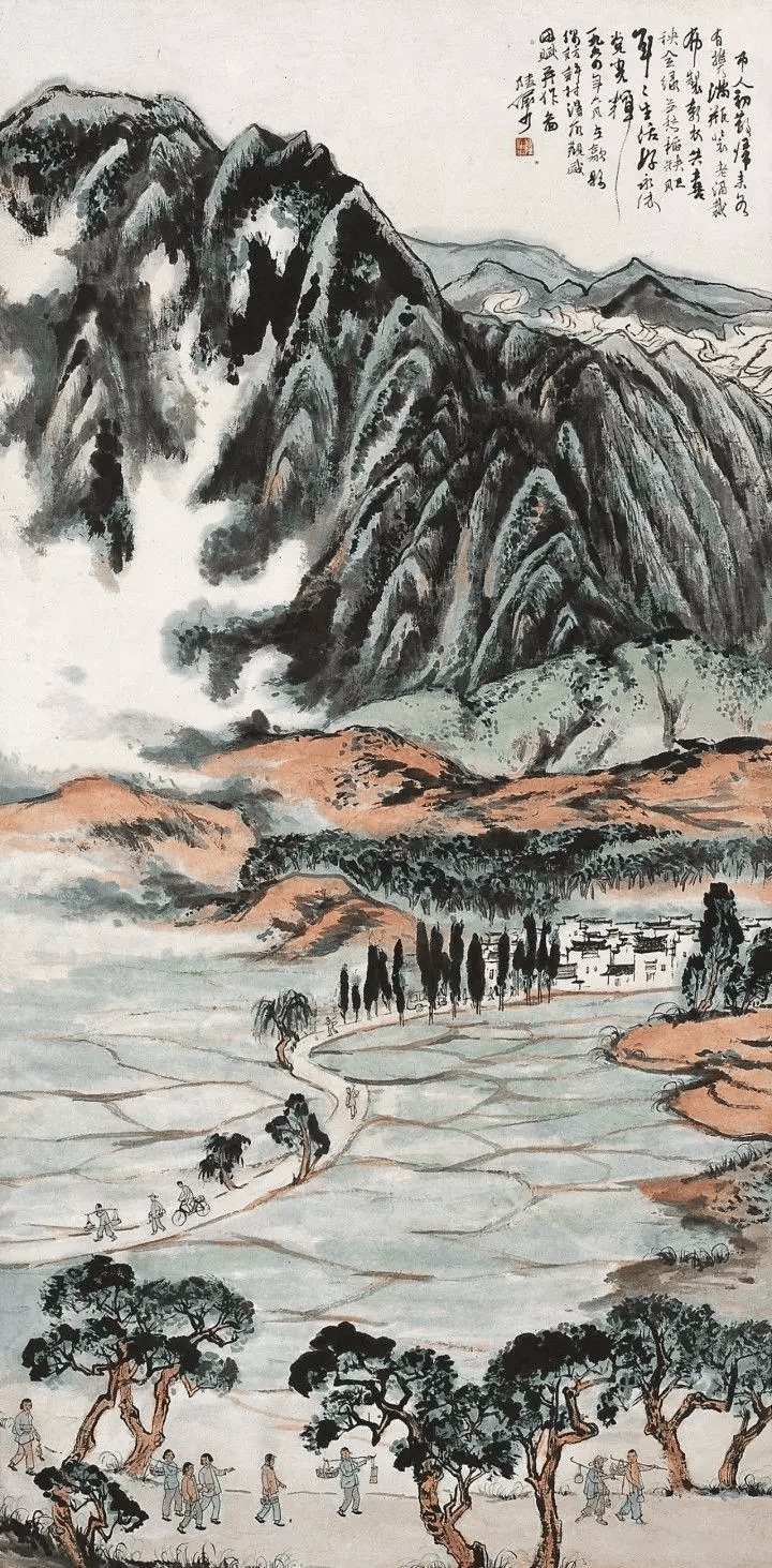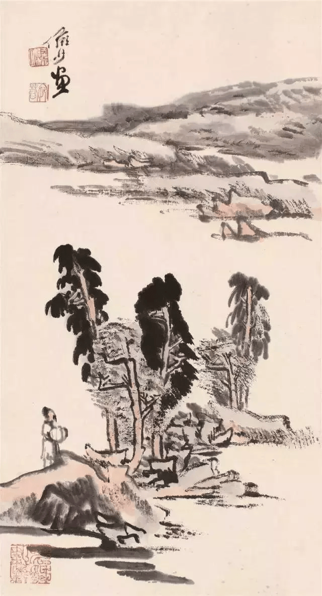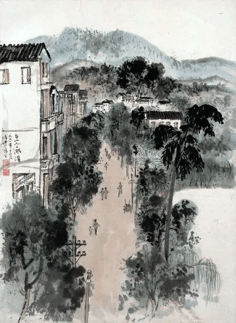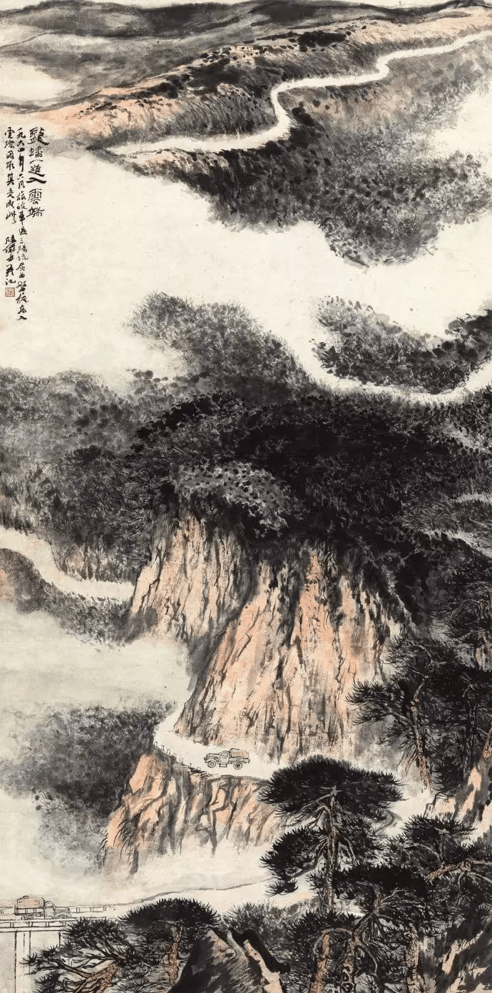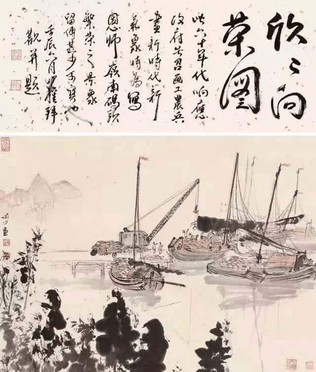 从中年时期的创作可见,陆俨少状物写象的兴趣相当广泛,不但山水、人物、花鸟皆有涉猎,梯田、公路、水车、汽车、轮船乃至飞机,竟在他的山水画中都有所表现。陆俨少早年欣赏“士气作家俱备”的项圣谟,其实他自己的绘画天性亦是“士气作家俱备”。陆俨少早期偏于写意的纯粹笔性修练,中年时期则致力于画意的丰富拓展,兼顾笔性与墨法的发挥。写意的士气,决定一位国画家精神修练的深度;而画意的作家气,则是一位画家面对形象的敏感反应,这亦是画家不断拓展创造力的必要条件。