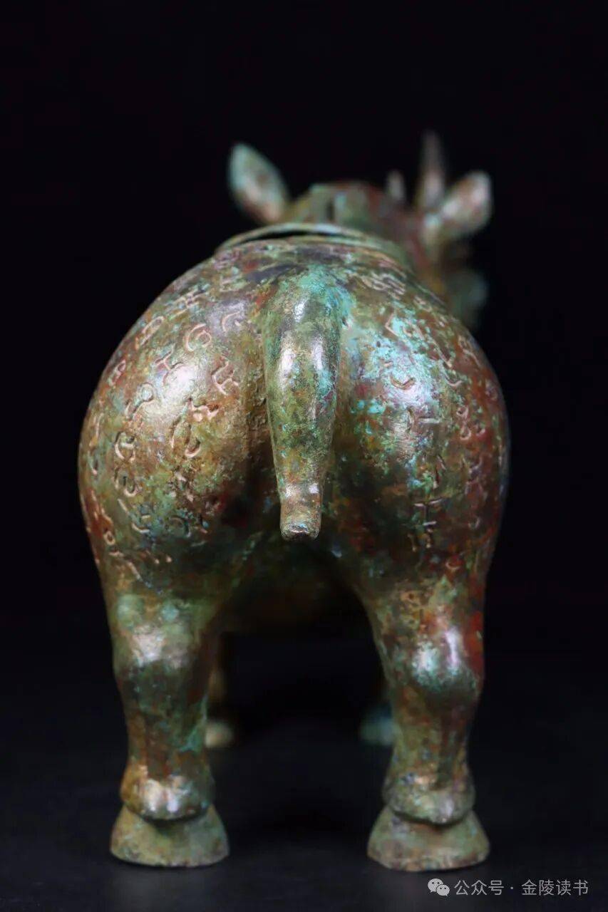 在国家博物馆的古代中国通史展中,展出了一件西汉时期的铜器——错金银云纹青铜犀尊。这件青铜器于上世纪六十年代在陕西兴平县吴乡豆马村出土,长五十八厘米。犀牛的形象栩栩如生,昂首伫立,身体肥硕,四腿短粗,肌肉发达,比例精准,体态雄健。犀牛的皮肤厚实且多皱,两角尖锐,双眼镶嵌着黑色的料珠,生动地展现了古代苏门犀的形象。