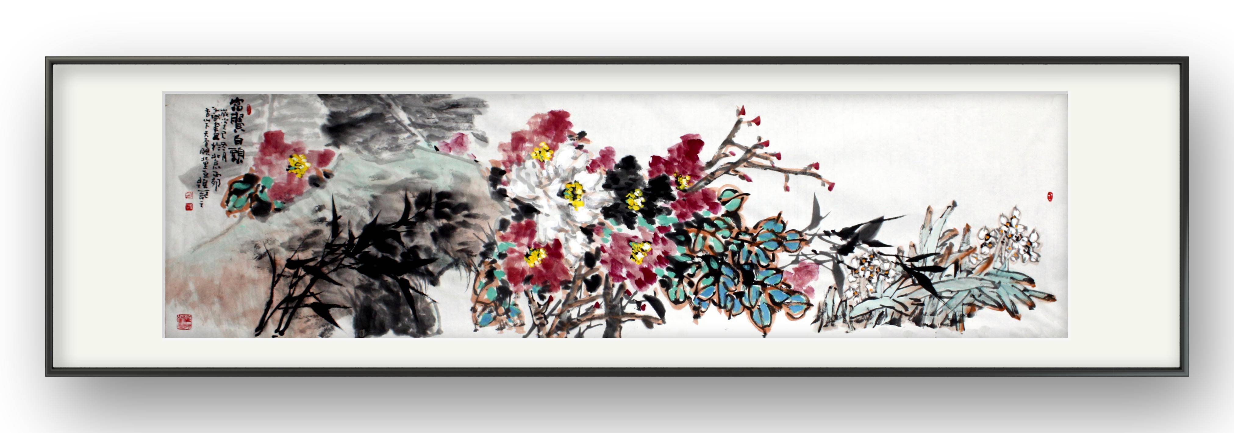 王雪涛在色彩表达上的突破,更彰显其贴合时代审美的敏锐洞察力。传统写意多拘于固有色,色调沉闷内敛,难以契合近现代大众多元的审美需求。他曾研习西画,深谙色彩运用之道,大胆借鉴西洋色彩的对比与调和之法,提出“色墨相济,以色助墨、以墨显色”的主张,始终以水墨为本色,让色彩服务于意境营造而非单纯的艳丽追求。《万紫千红》中,牡丹雍容、月季清丽,色彩鲜活却不艳俗,个体鲜明又整体和谐,彻底摆脱了传统设色的沉闷感,透着时代审美的明快活力。这种革新并非对传统的背离,而是循着时代审美趋势对传统写意语言的精准赋能,让写意作品既保有古典韵味,又贴近大众感知,为写意艺术走向更广阔受众铺就了路径。