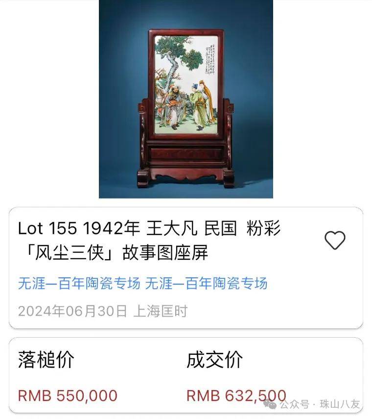 近年来,收藏市场对 “珠山八友” 作品的热度持续攀升,王大凡作为 “珠山八友” 的核心成员之一,其作品自然成为藏家竞相追逐的对象。各大拍卖会纷纷推出王大凡的瓷板画作品,每次都能吸引众多藏家参与竞拍,竞拍过程激烈,成交价屡创新高。这种市场热度不仅体现了王大凡瓷板画的艺术价值和收藏价值,也反映了市场对其作品的高度认可。