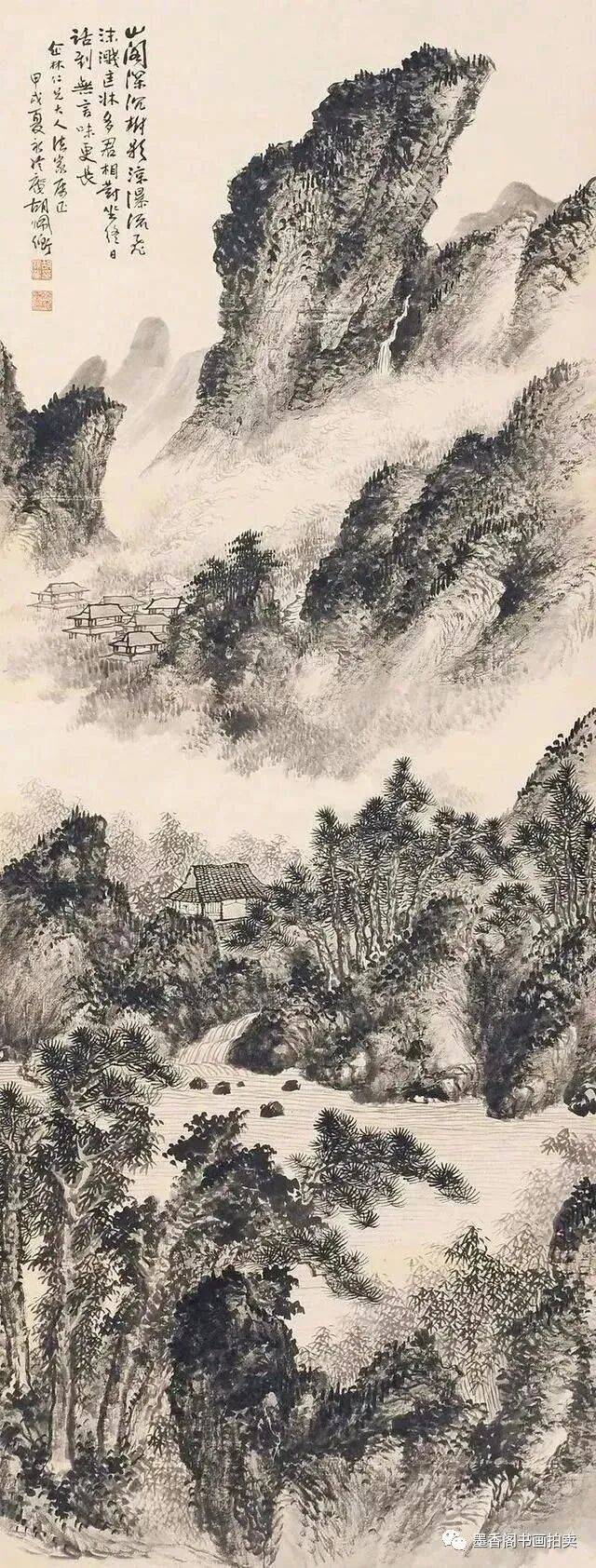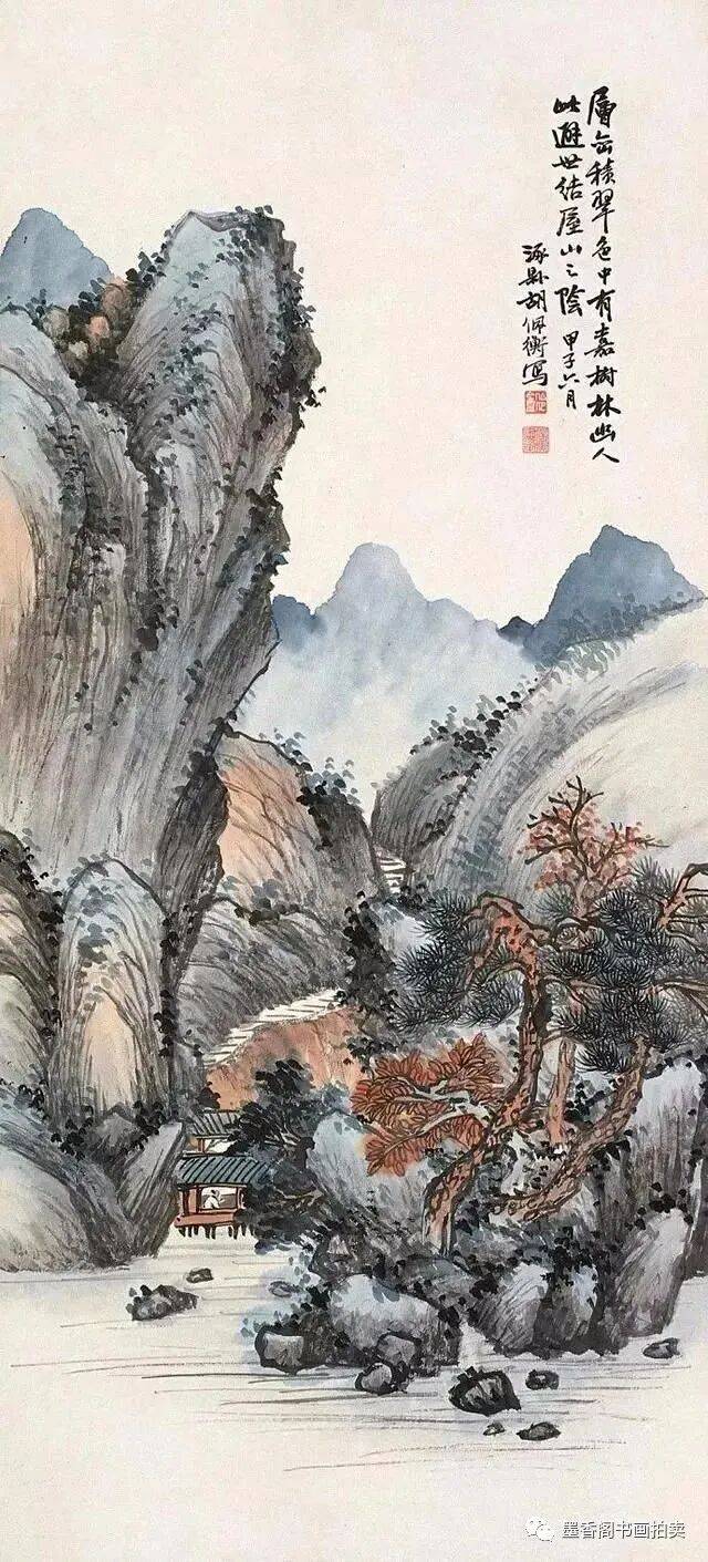 胡佩衡善山水画,早年师法王蒙、沈周、石涛诸家,他手上的功夫了得,下笔沉实活脱,笔墨温润清澈,设色淡雅,意境深邃古朴,细细琢磨,都觉有味。