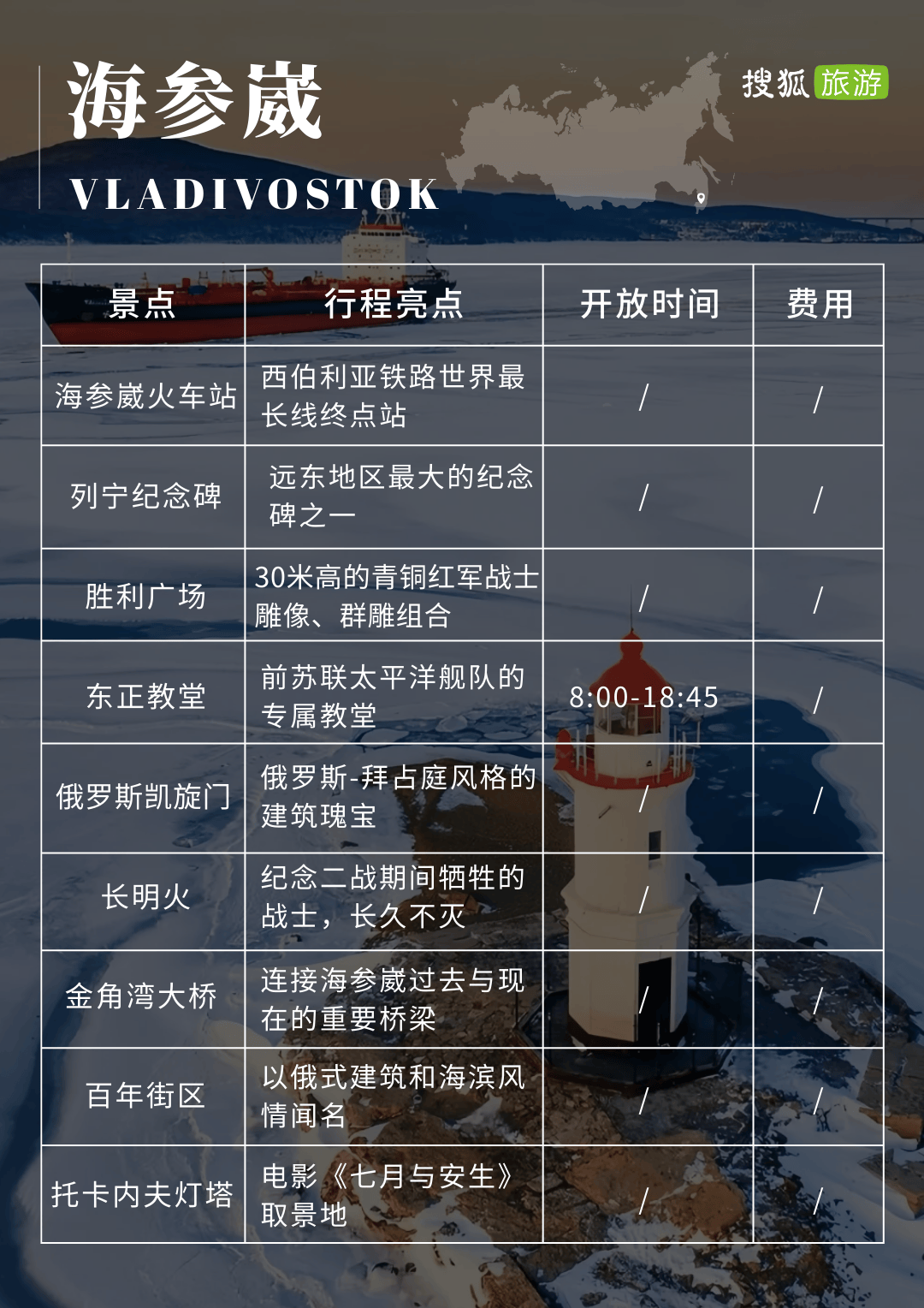 D2 海参崴要塞博物馆-托卡内夫灯塔-远东联邦大学-俄罗斯岛-托比津纳海角-玻璃海滩海参崴火车站