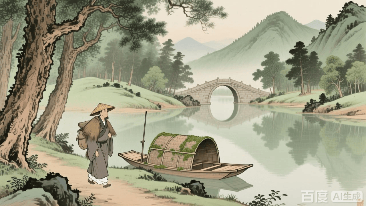 南宋时期,释志南是个喜爱游历的诗僧。有一年春天,他拄着藜杖,乘坐着小篷船,悠然地来到一处山林。他将小船系在古木的树荫下,然后拄着藜杖,慢悠悠地朝着桥东走去。