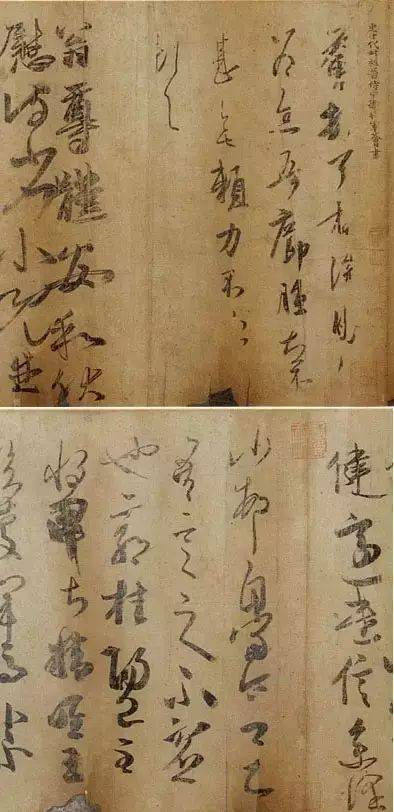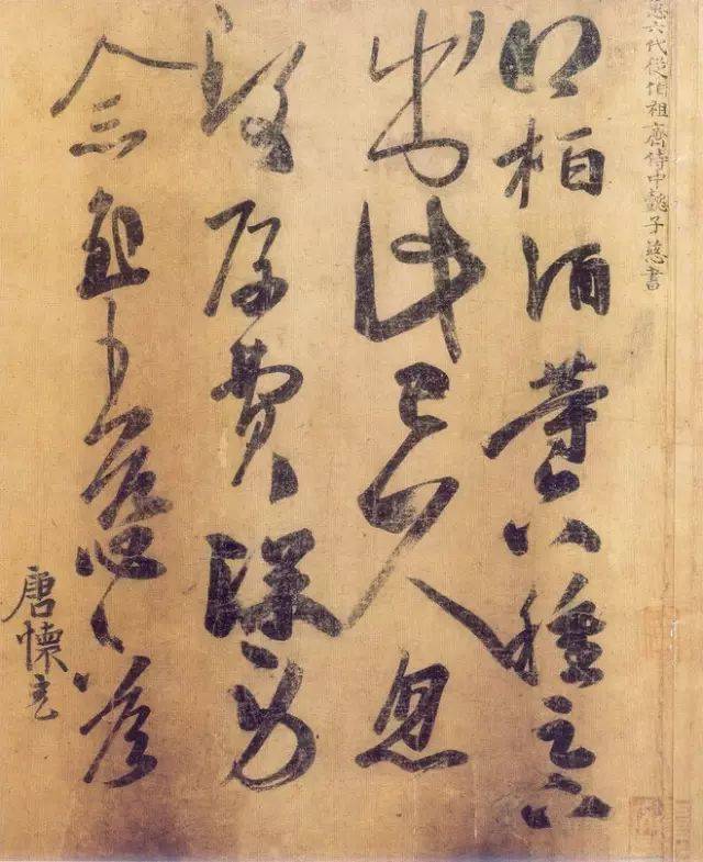 王慈《栢酒帖》。王慈善隶,行书。其草书运笔圆浑,含蕴凝重,然体态十分灵动,纵横姿肆,使人联想到王献之书作风格。