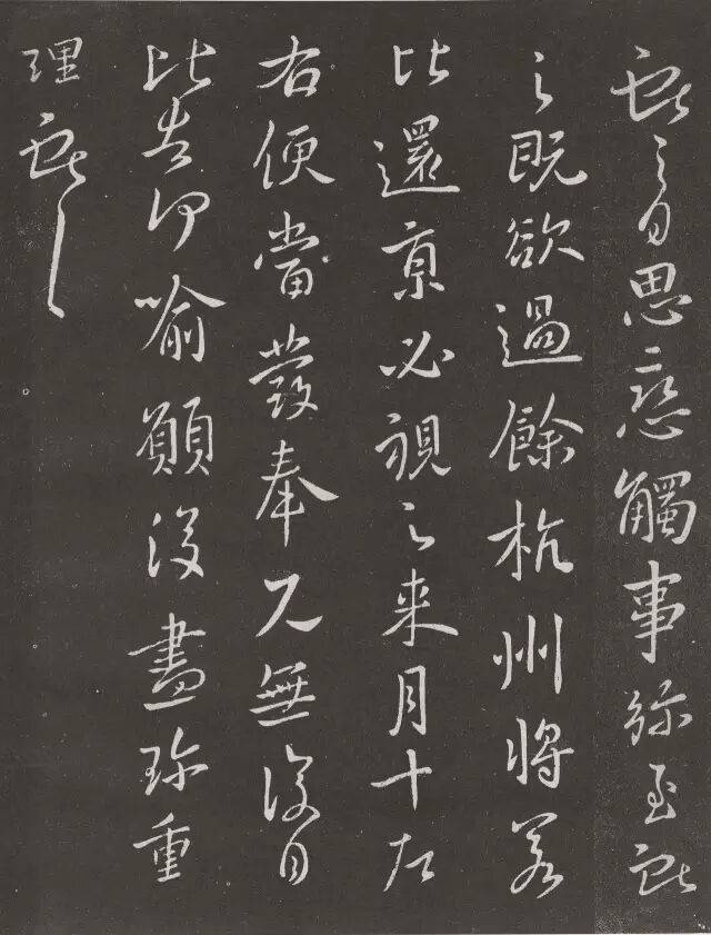 王献之《餘杭帖》(又称《触事帖》)拓本。行书。六行,五十一字。入刻《淳化阁帖》卷九。