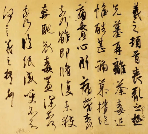 王凝之的此帖笔法以清劲为主,开篇时稳健时迟缓,中后篇用笔速度较快,笔画也变得活跃跳荡。