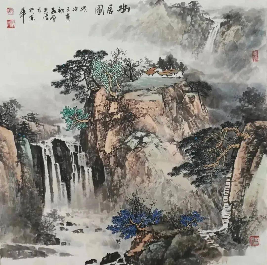 单玉清先生之山水,非仅绘丘壑,实写心象也。其构取高远、深远、平远之变,其法融泼墨、皴染、设色之妙,其旨藏 “真、静、孤、幽、悟” 之思。观其作,如读《庄子》之逍遥,如品陶诗之冲淡,如悟禅家之空明 —— 山水为体,心性为魂,此正文人画 “以形写神” 之真义也。
