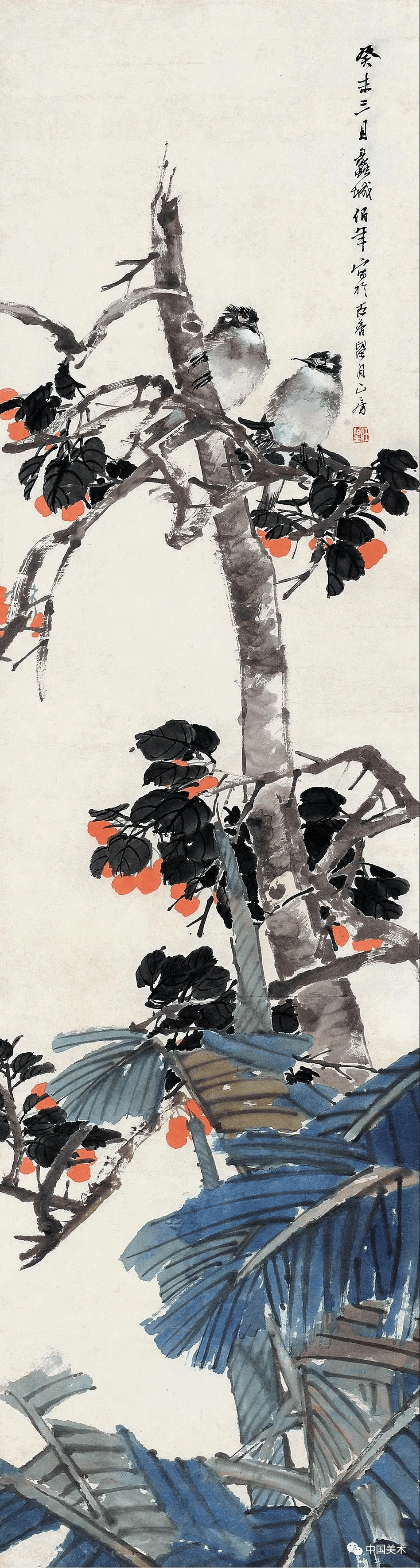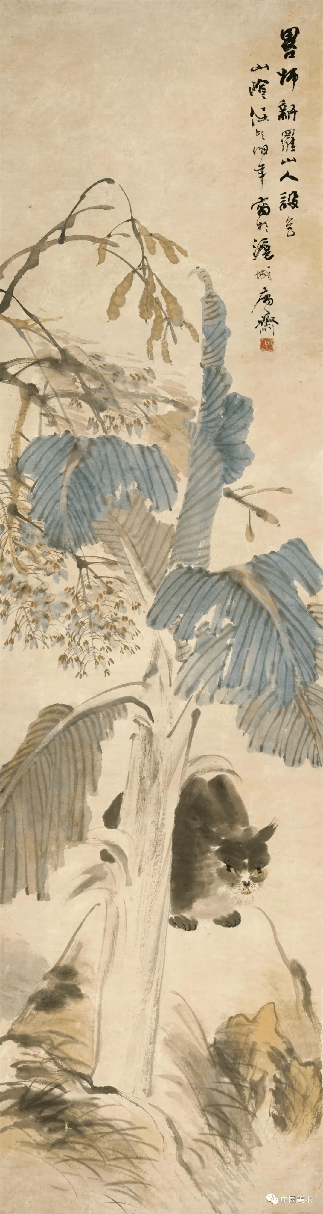 任伯年《绣球芭蕉》1882年 178.6×48厘米