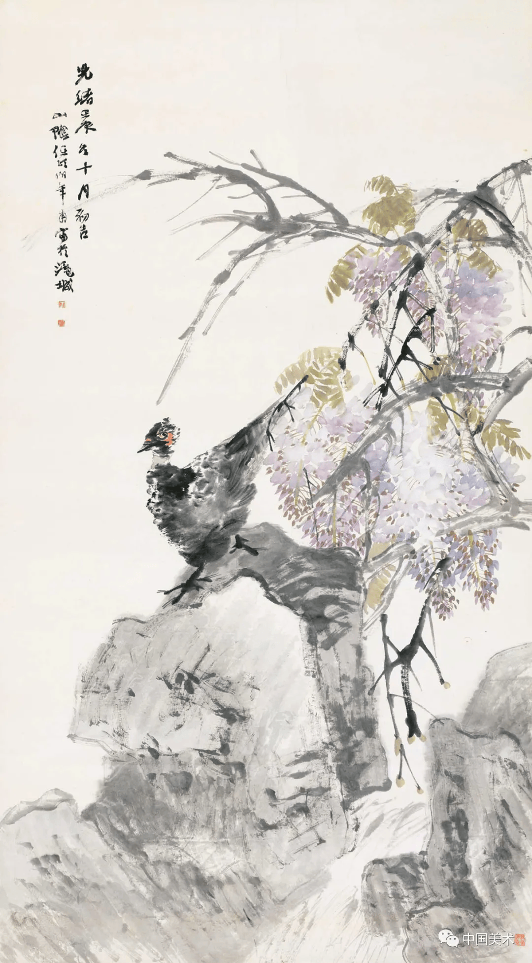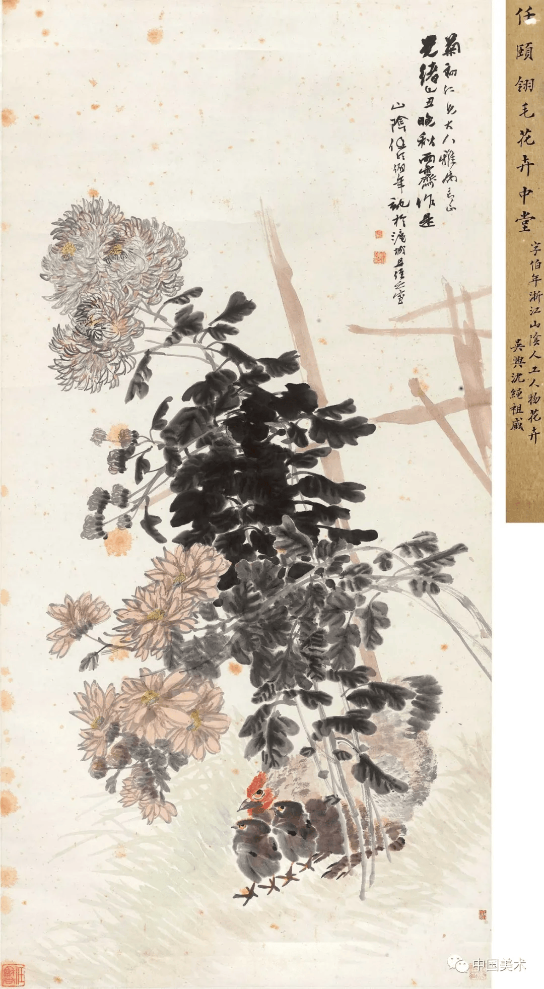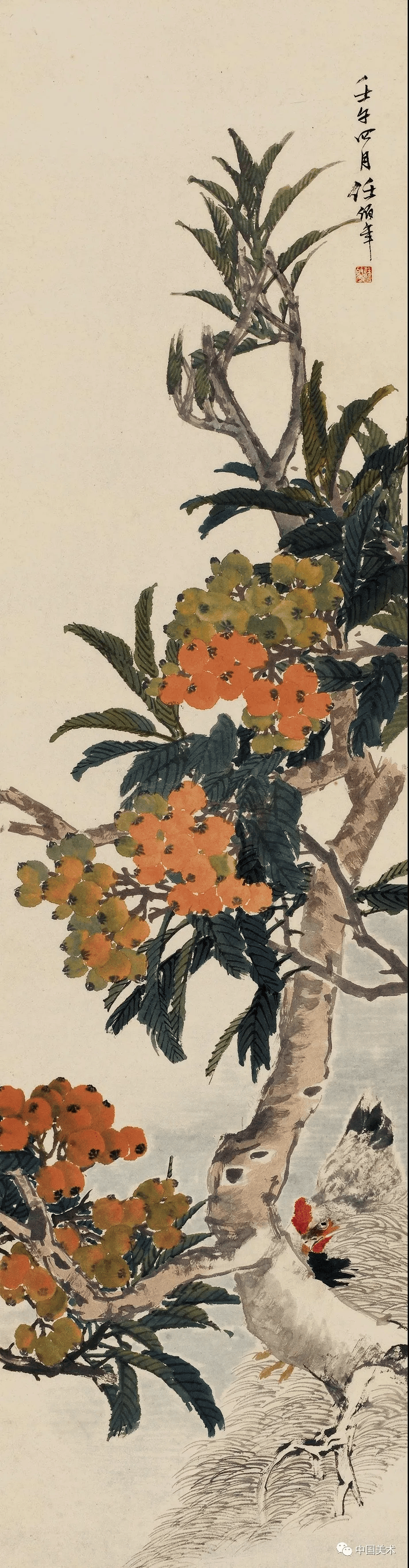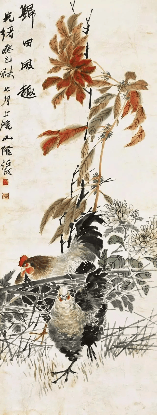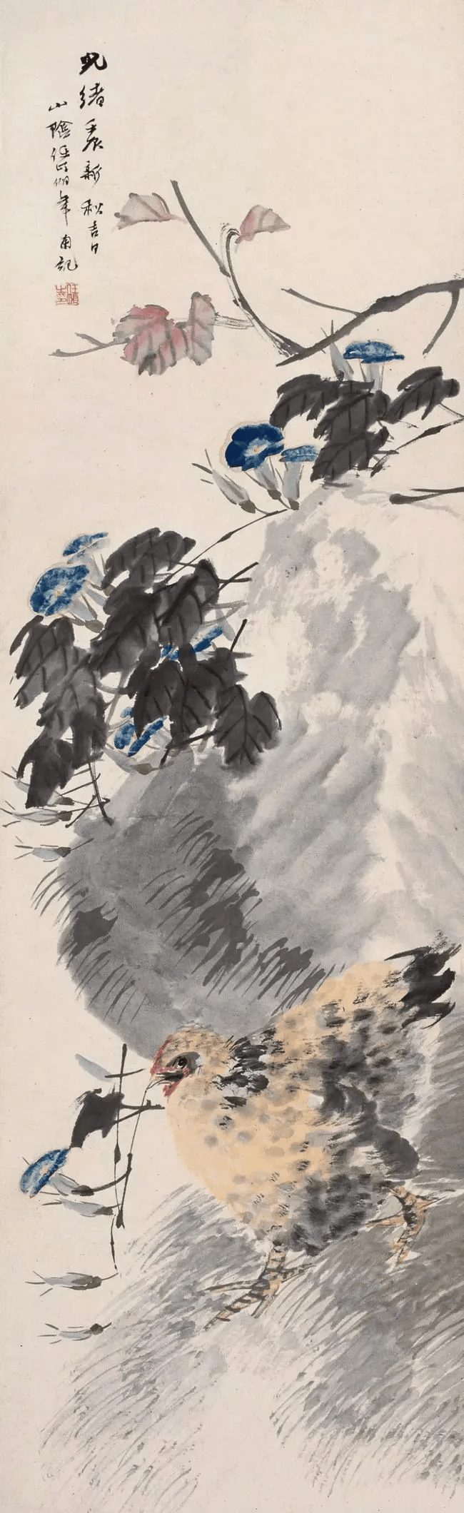 任伯年 《牵牛母鸡》1892年 128.2×39厘米