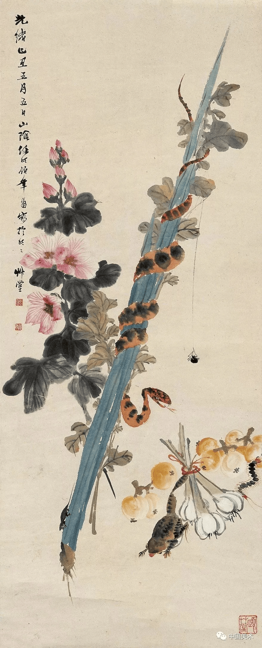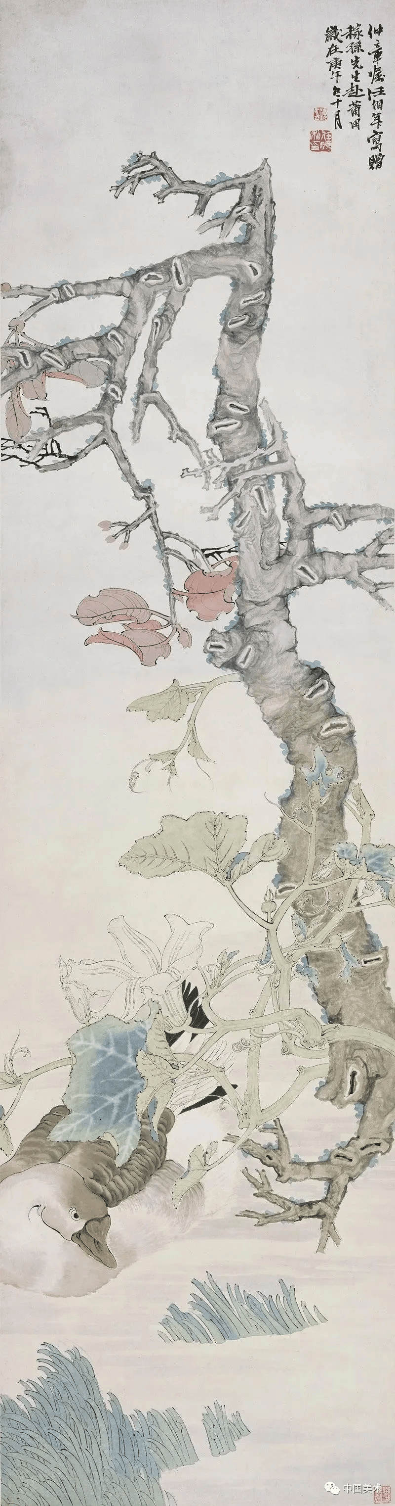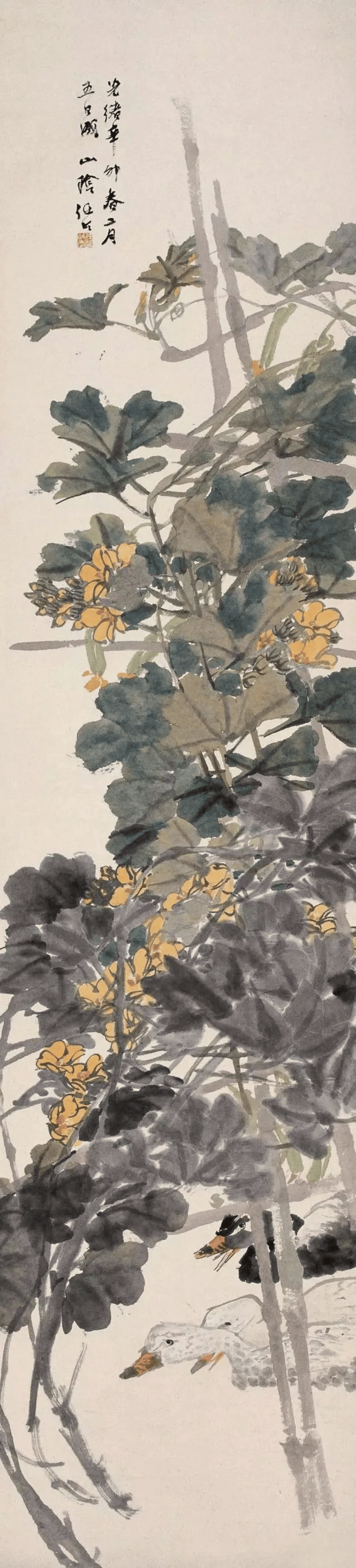 任伯年《瓜藤浴鸭》1891年 215.4×49.3厘米