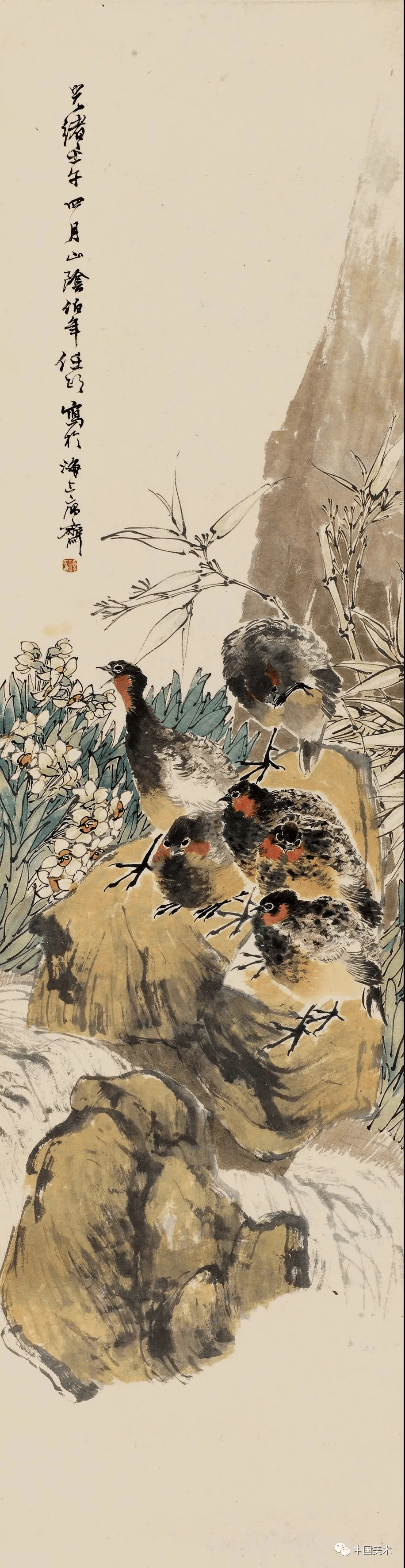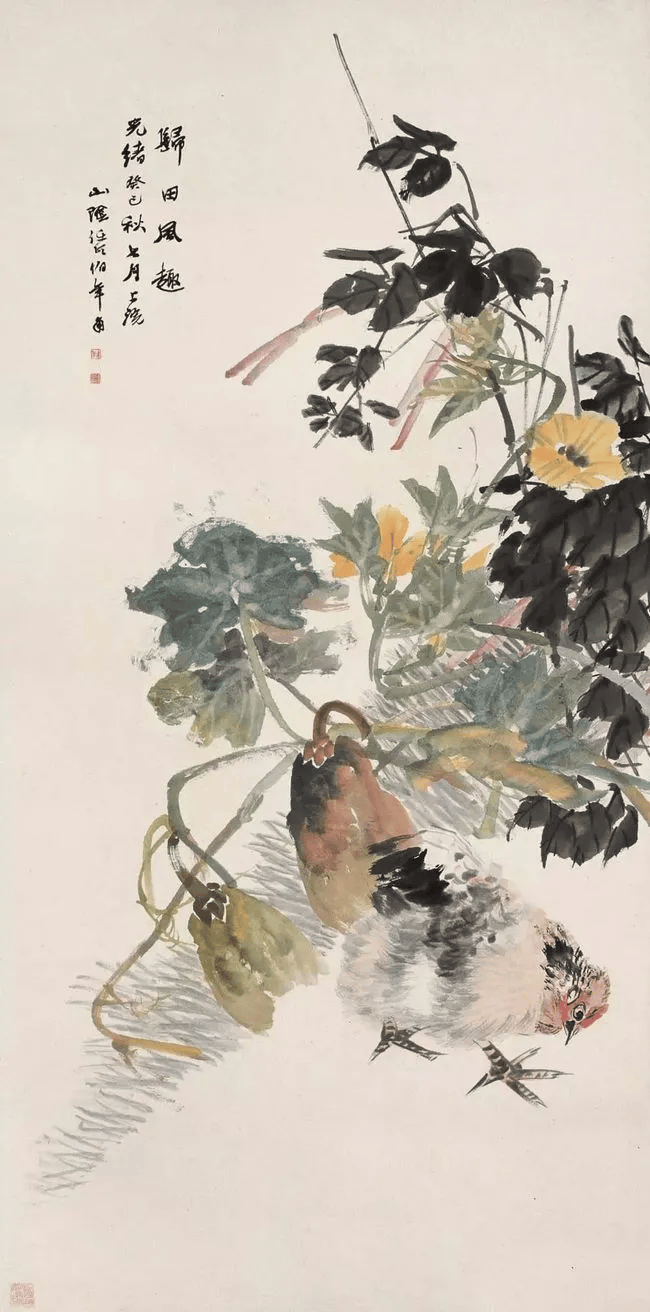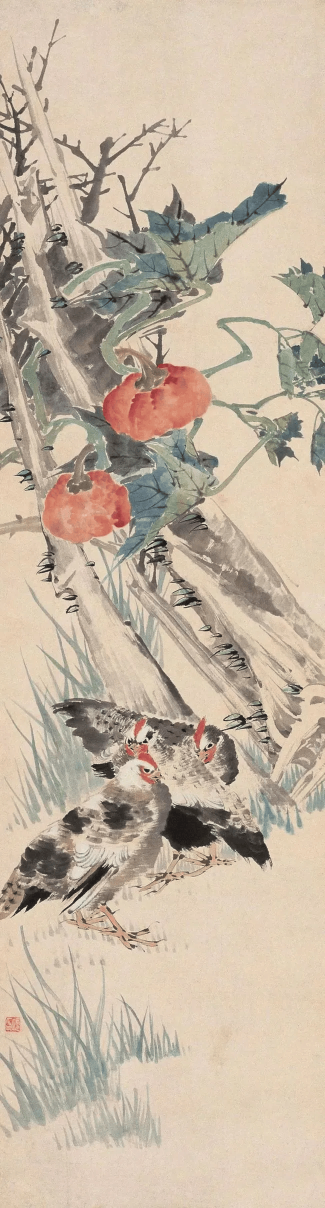 任伯年《南瓜三鸡》1872年 145×39厘米