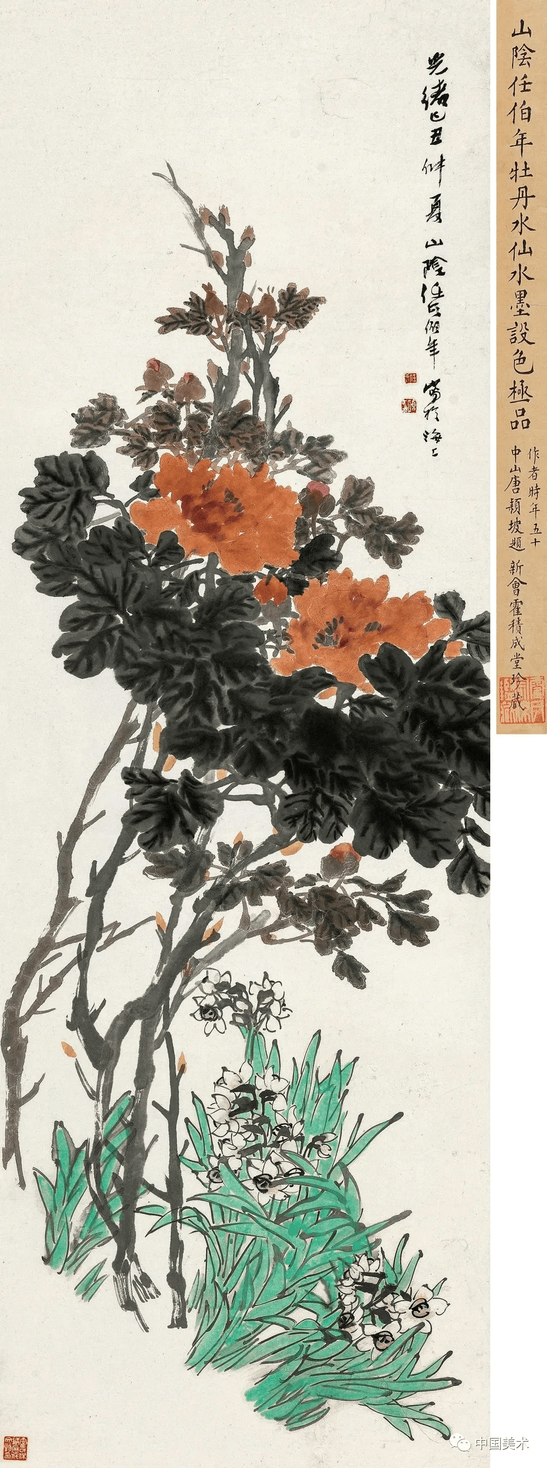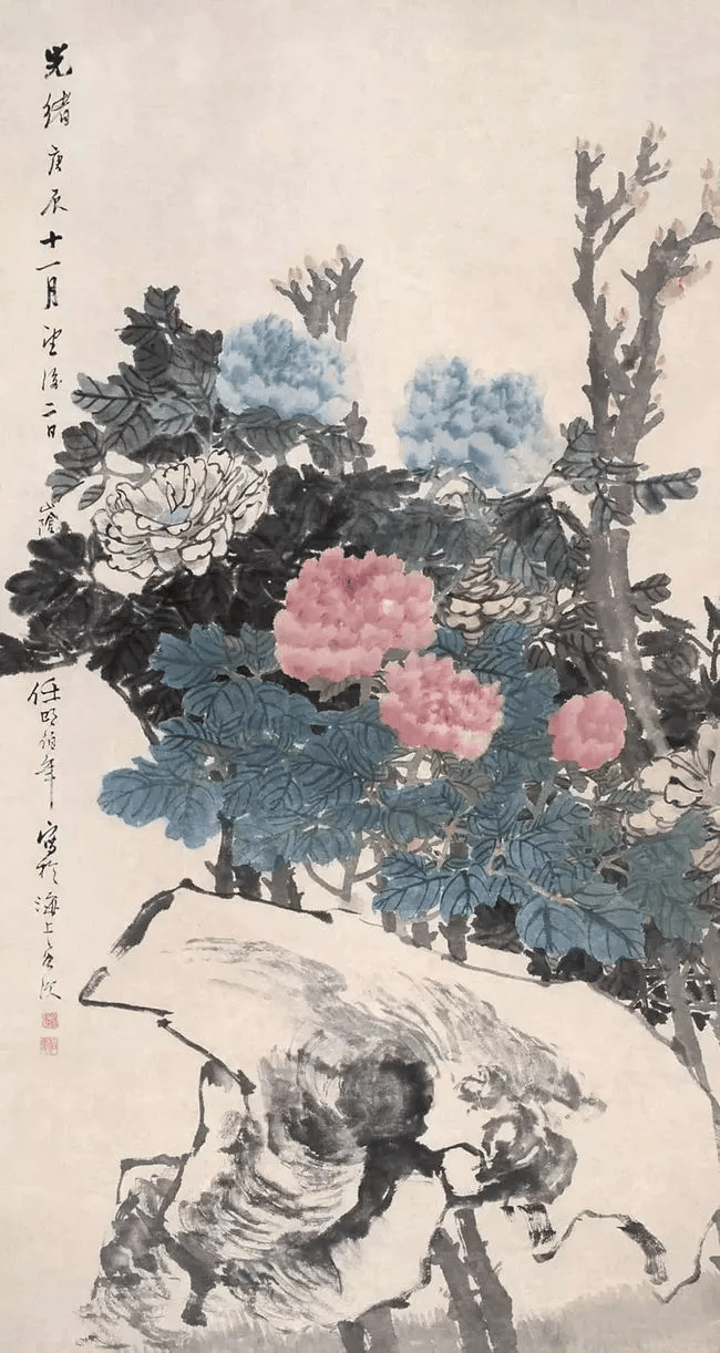 任伯年 《牡丹》1880年 148.5×79.4厘米