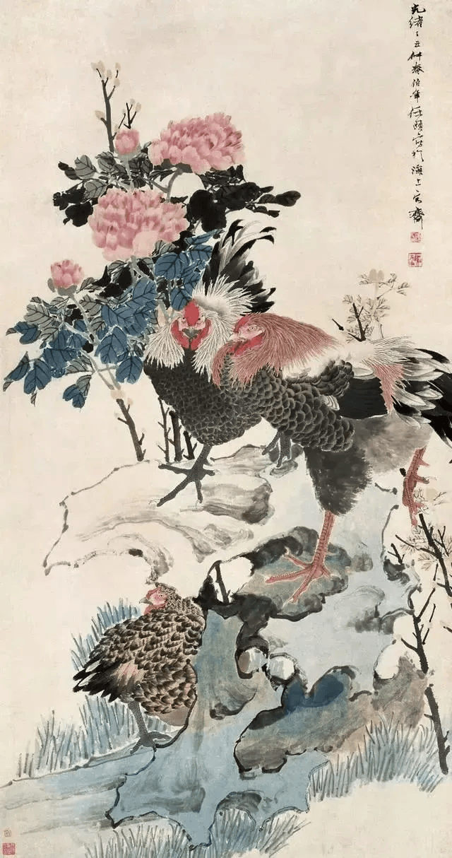 任伯年 牡丹鸡石图